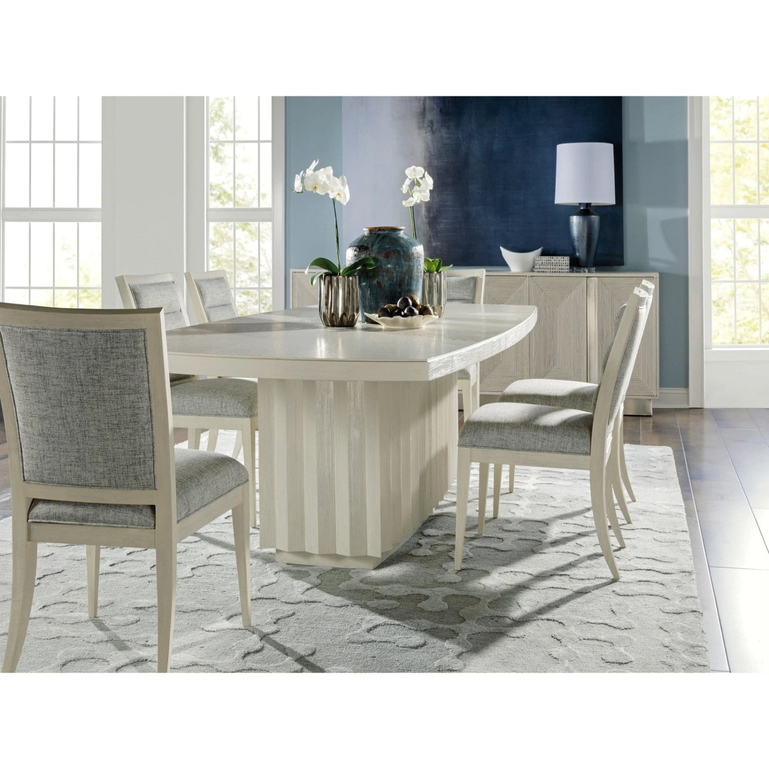 - Transitional designs crafted from mahogany and crown white oak veneers in our Cerused White Grey finish.