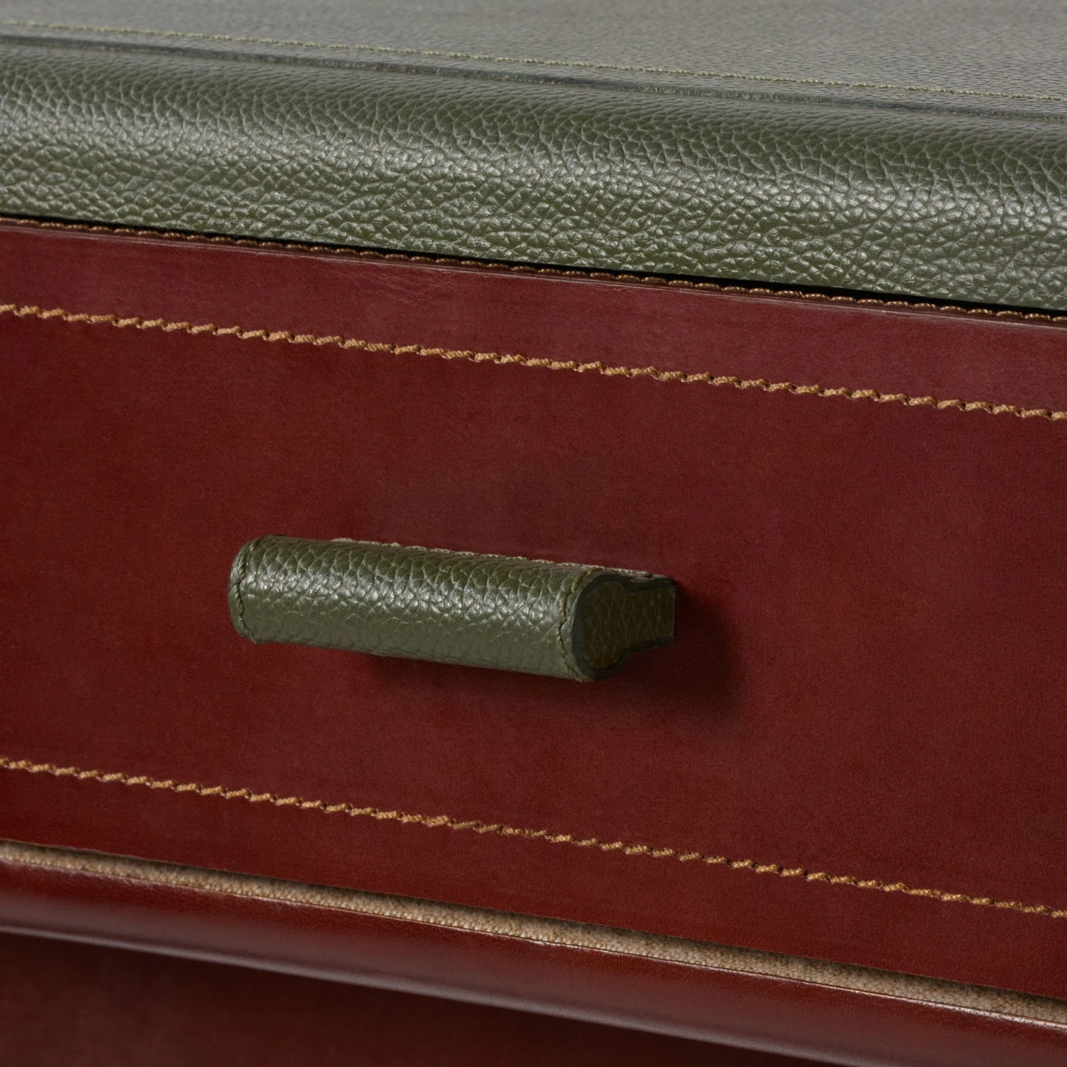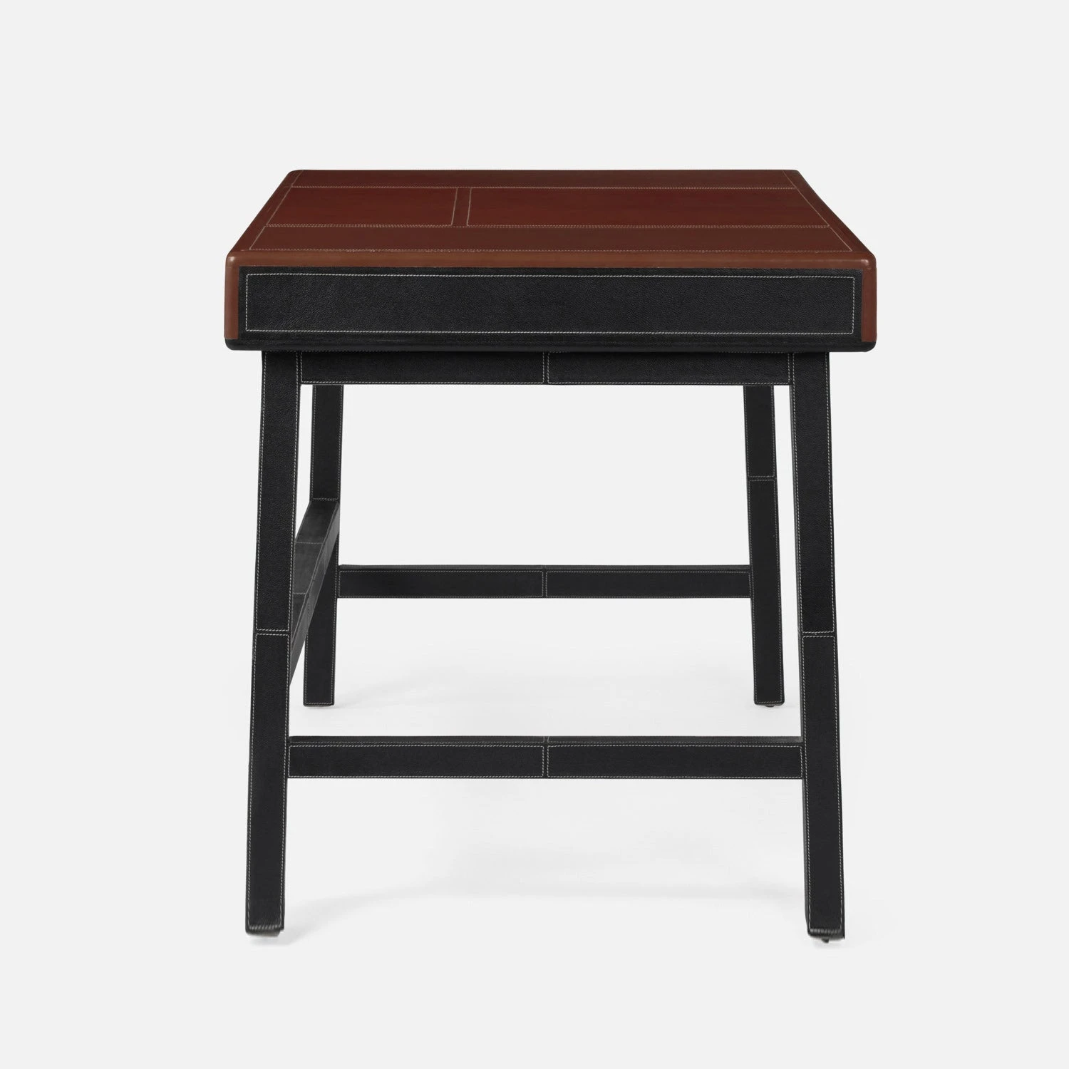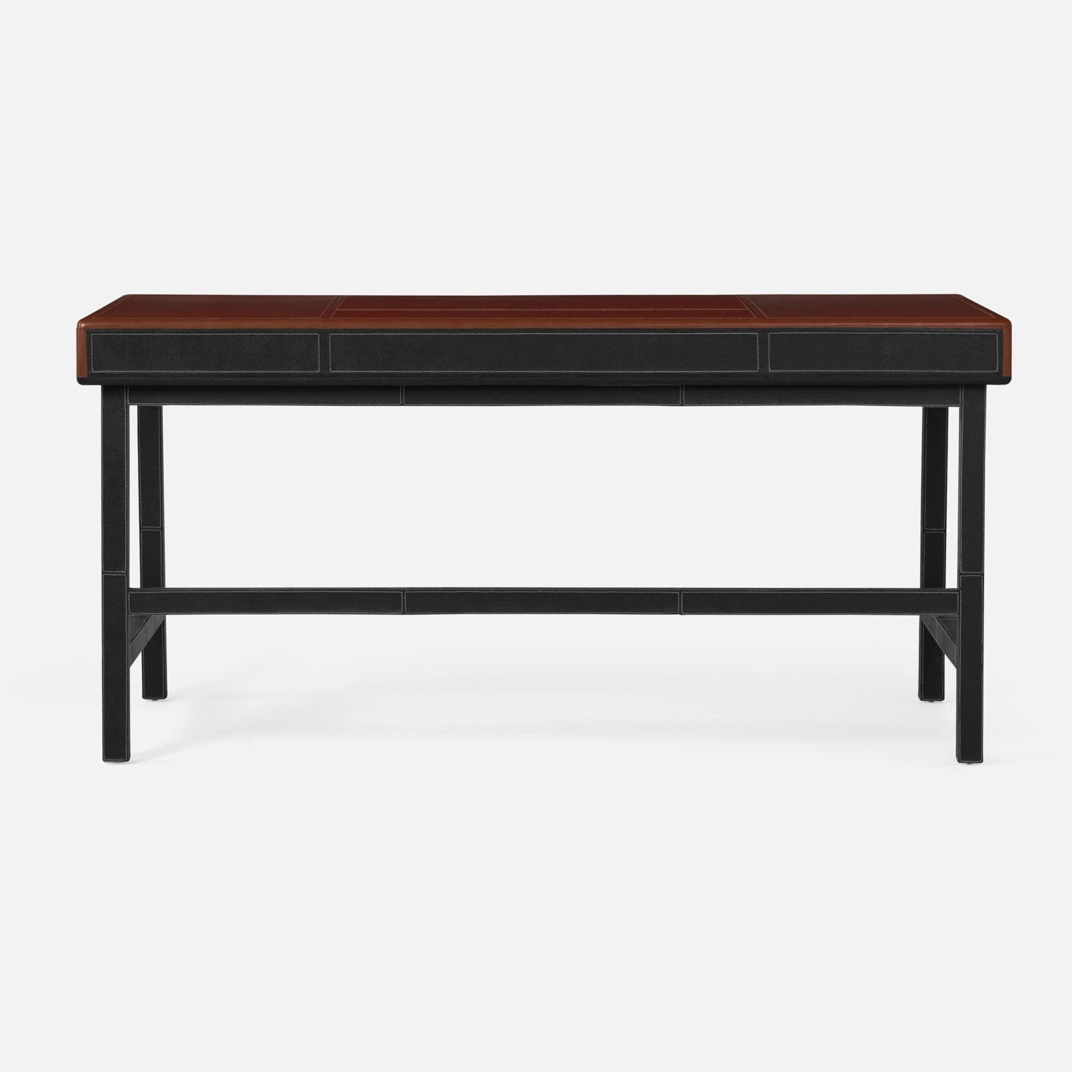 - The Axton is covered entirely in full-grain leather, down to the pulls on the desk’s drawers.