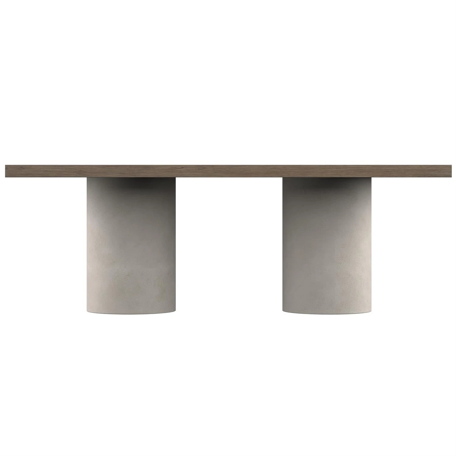 - Base: Two round pedestal bases of cast resin in Bedrock faux concrete finish