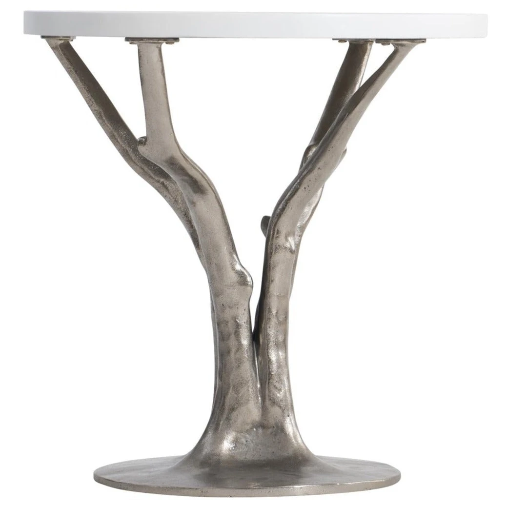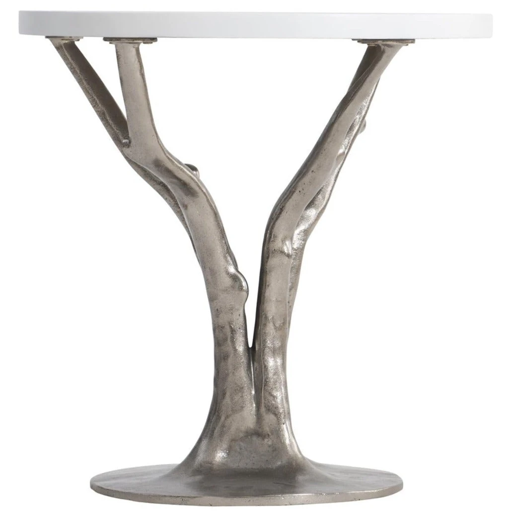 - Cast in aluminum with a Shiny Nickel finish, the branches support a glass-reinforced concrete top in Bone finish.