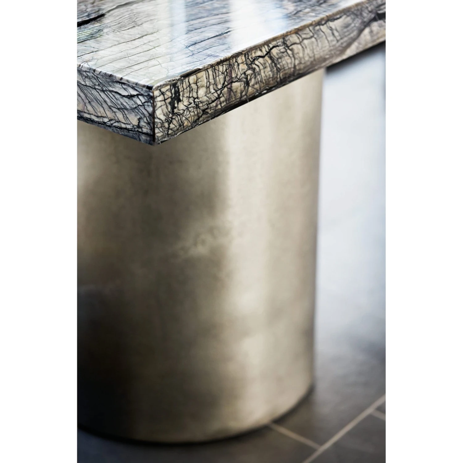 - Full of contrast and drama, the Linea desk pairs boldly patterned Black Forest marble with textured cast aluminum in a striking asymmetrical design.