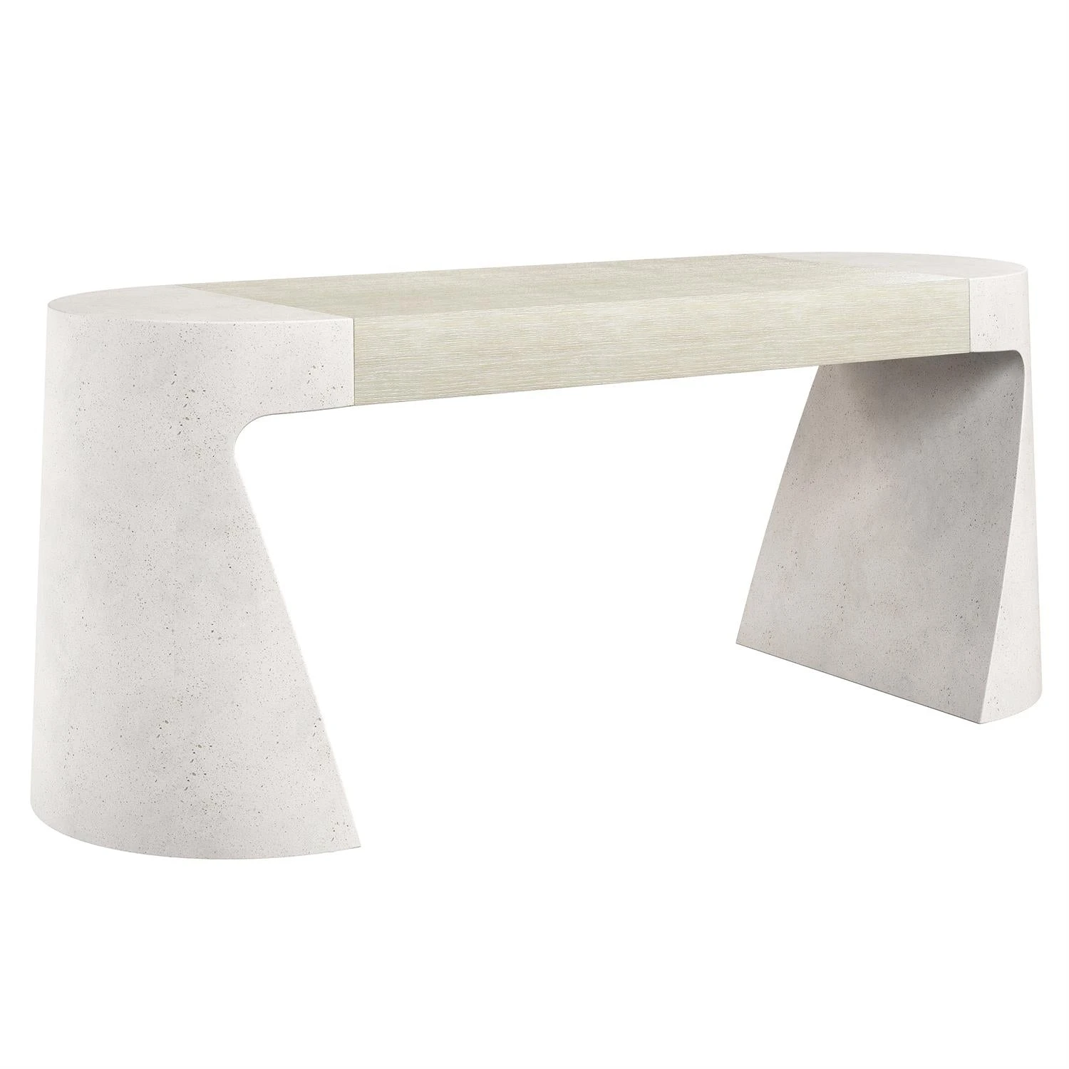 - Angled and semi-circular legs make a sleek statement in cast glass-reinforced concrete in Buff finish.