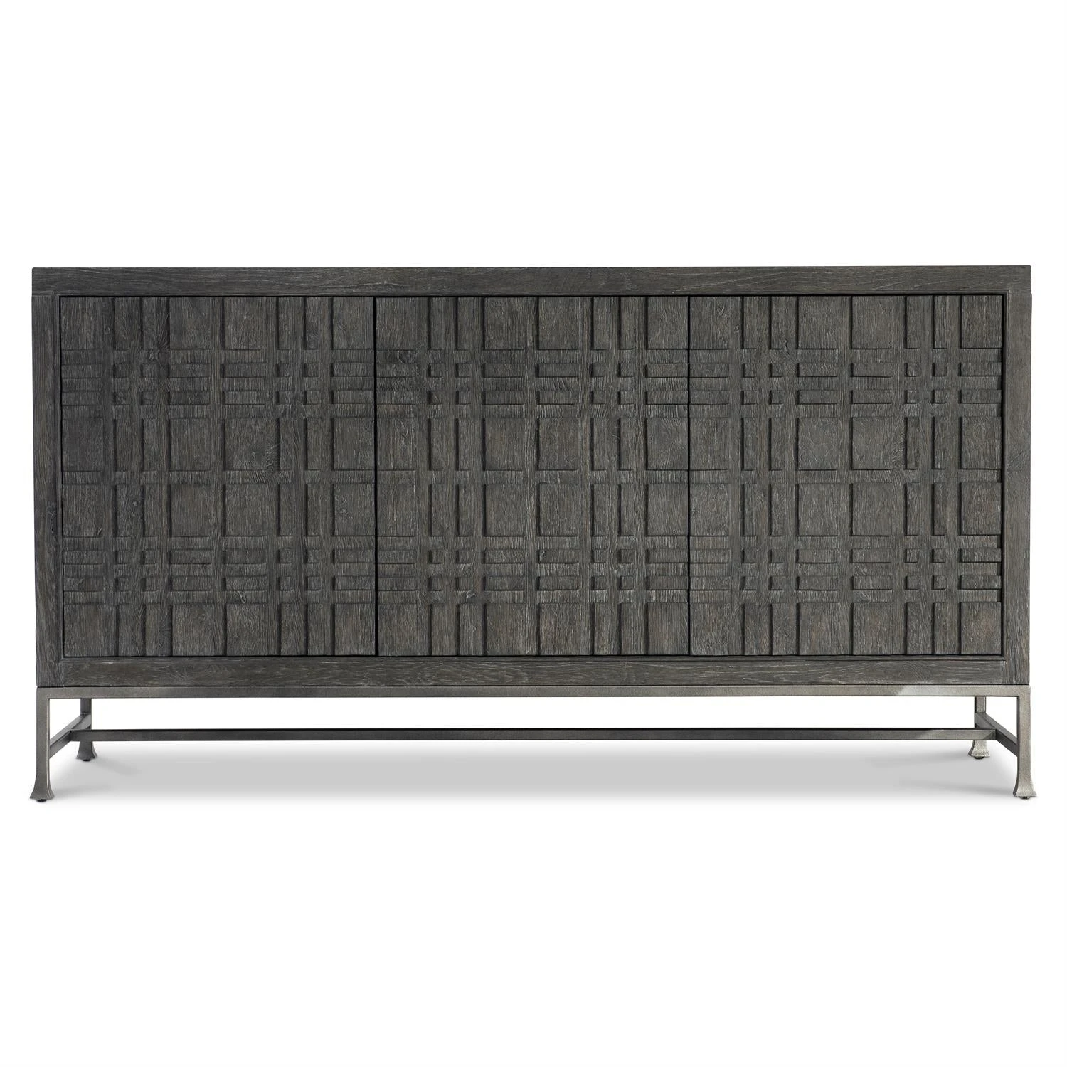 The Tribeca buffet offers a modern urban style with a raised geometric pattern inspired by the grid design of city streets. Finished in dark Tadon, the buffet has three push-to-open doors that open to reveal drawers, two adjustable shelves and two fixed shelves. The base offers a complementary look in textured steel in Barlow finish.