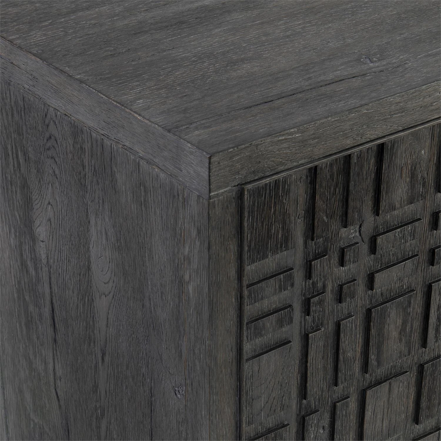 - Raised geometric pattern on three push-to-open, soft-close doors