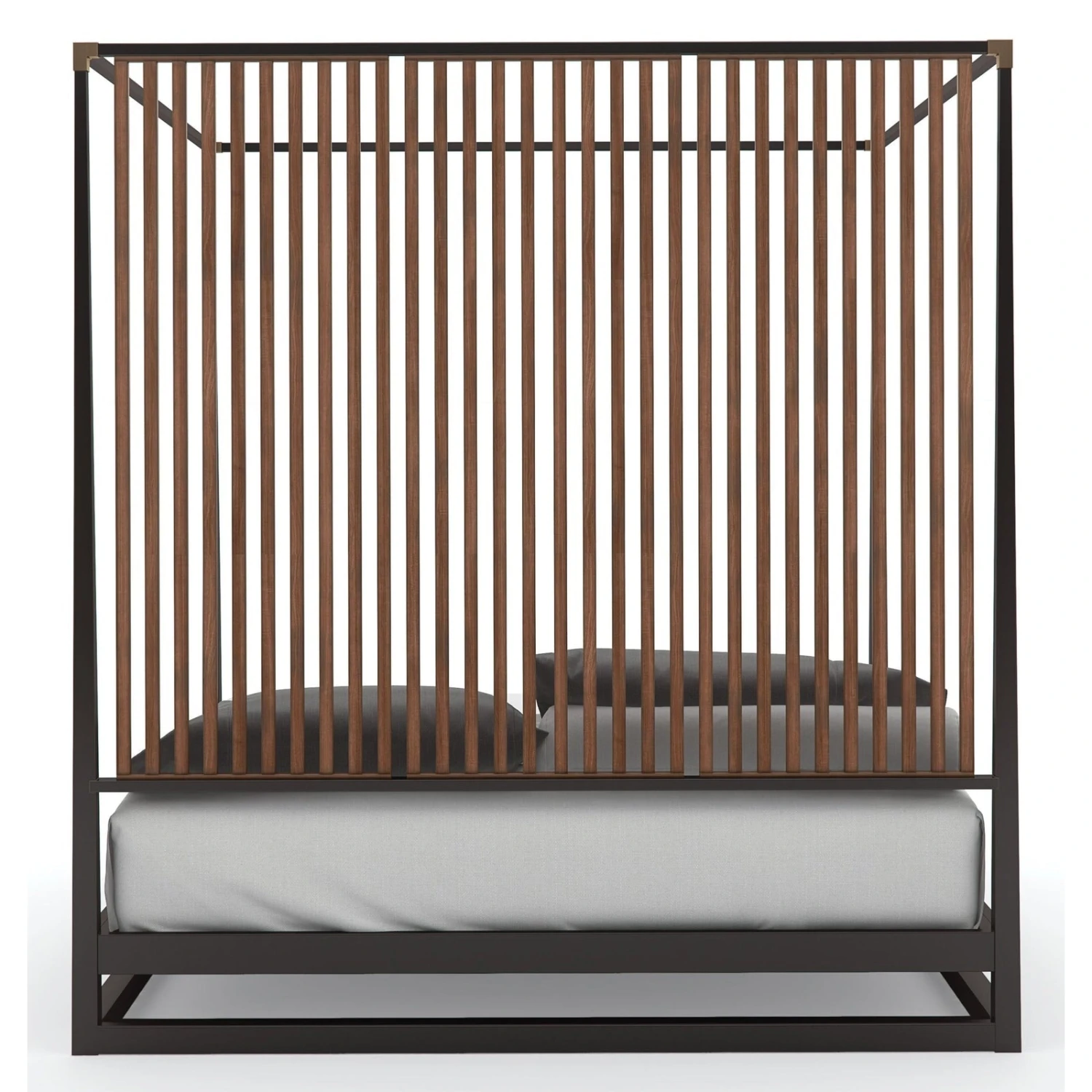 - Cascading lines lend a bold backdrop to this updated take on the classic canopy bed.