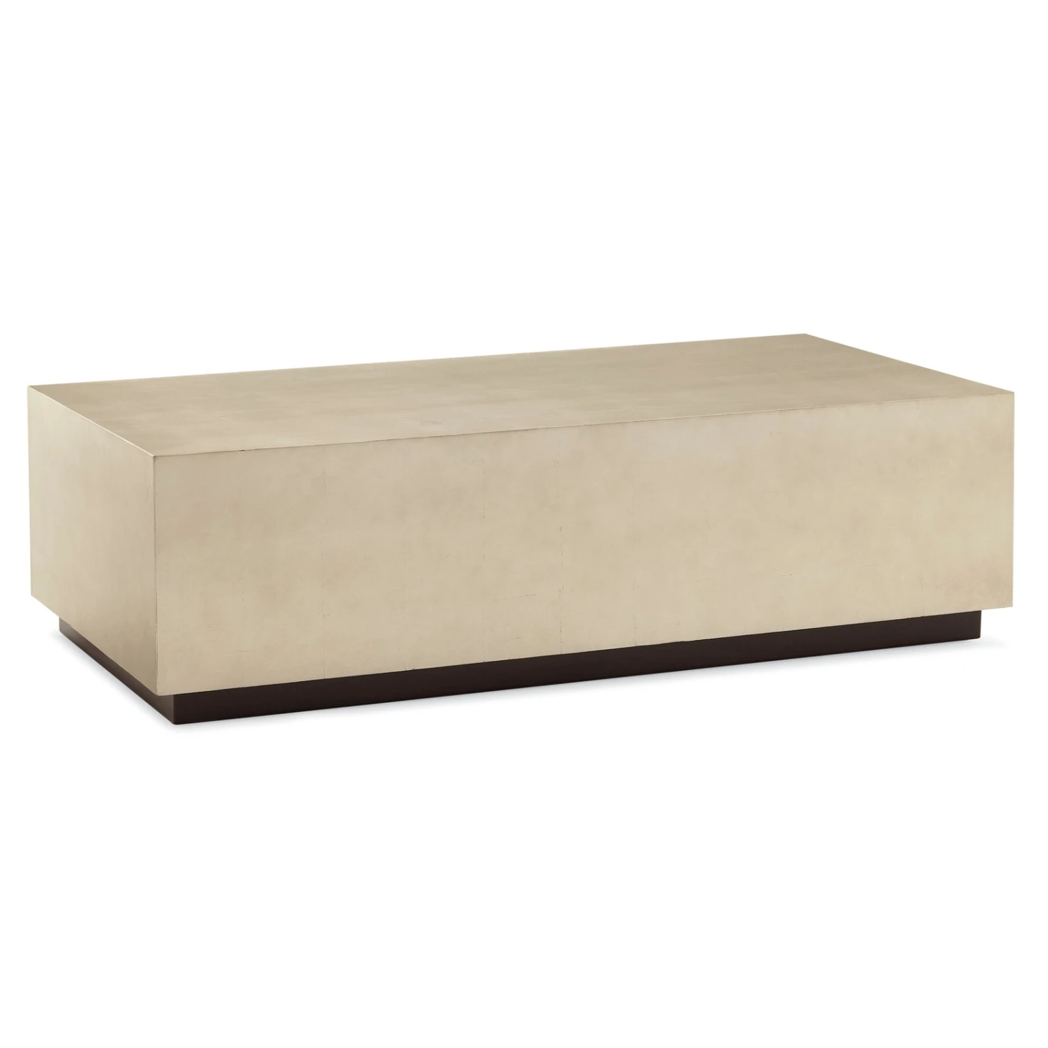 - Featuring a rectangular cubed silhouette, the table is finished in a demure Taupe Silver Leaf that is accented with a hint of sparkle.