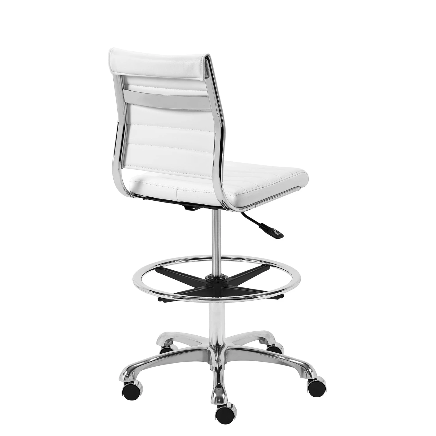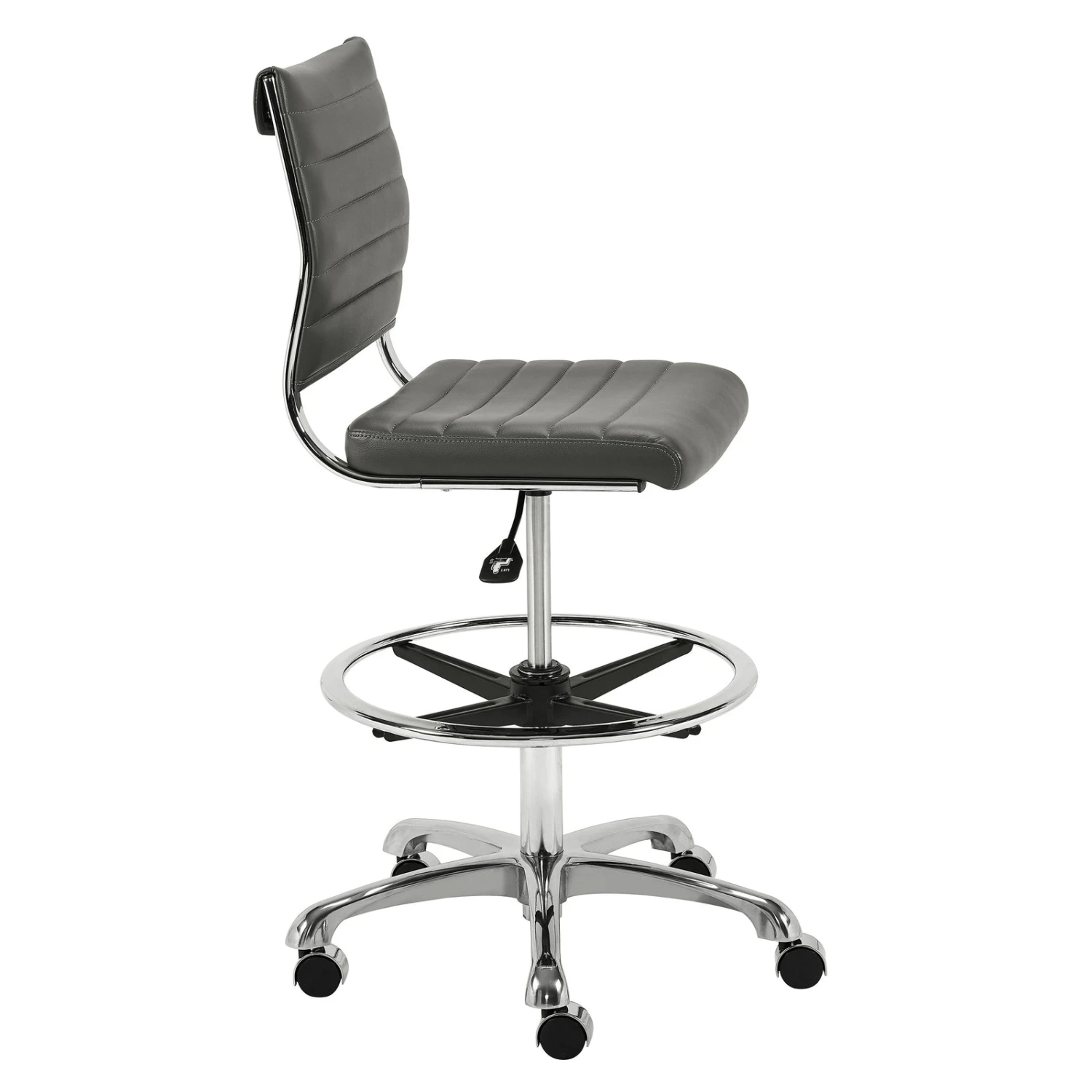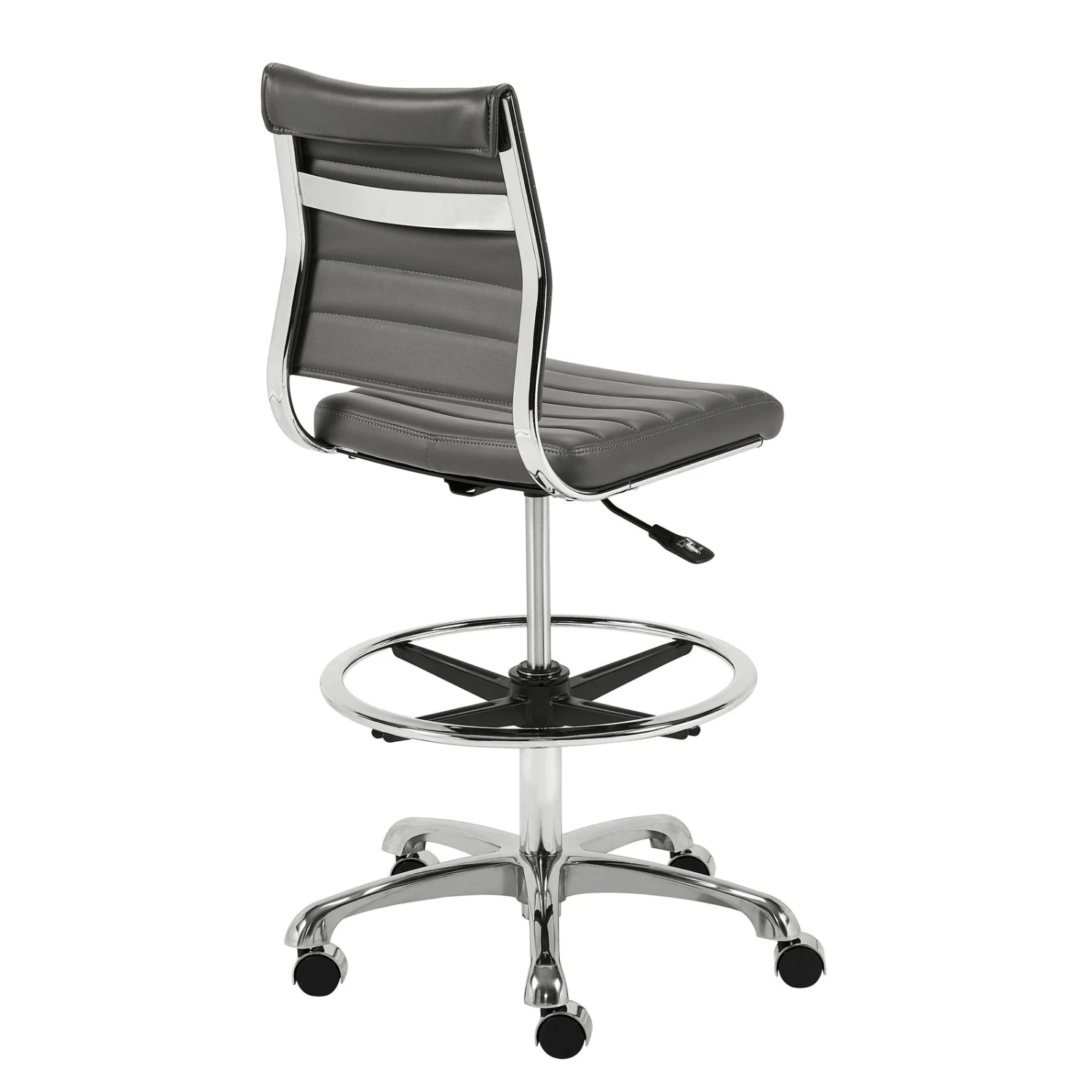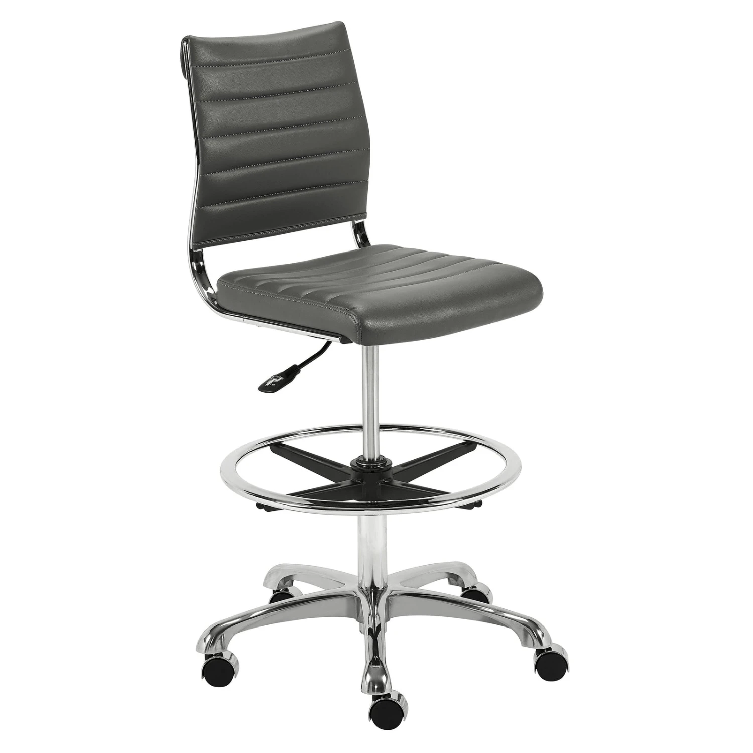 A ribbed seat, combined with soft leatherette join together to form an impossibly comfortable drafting stool. With adjustable seat height, and footrest, one can be certain the Axel Drafting Stool will fit any occasion. Not to mention a sturdy steel frame, and nylon casters make this stool contract grade, fit for any residential or commercial setting.