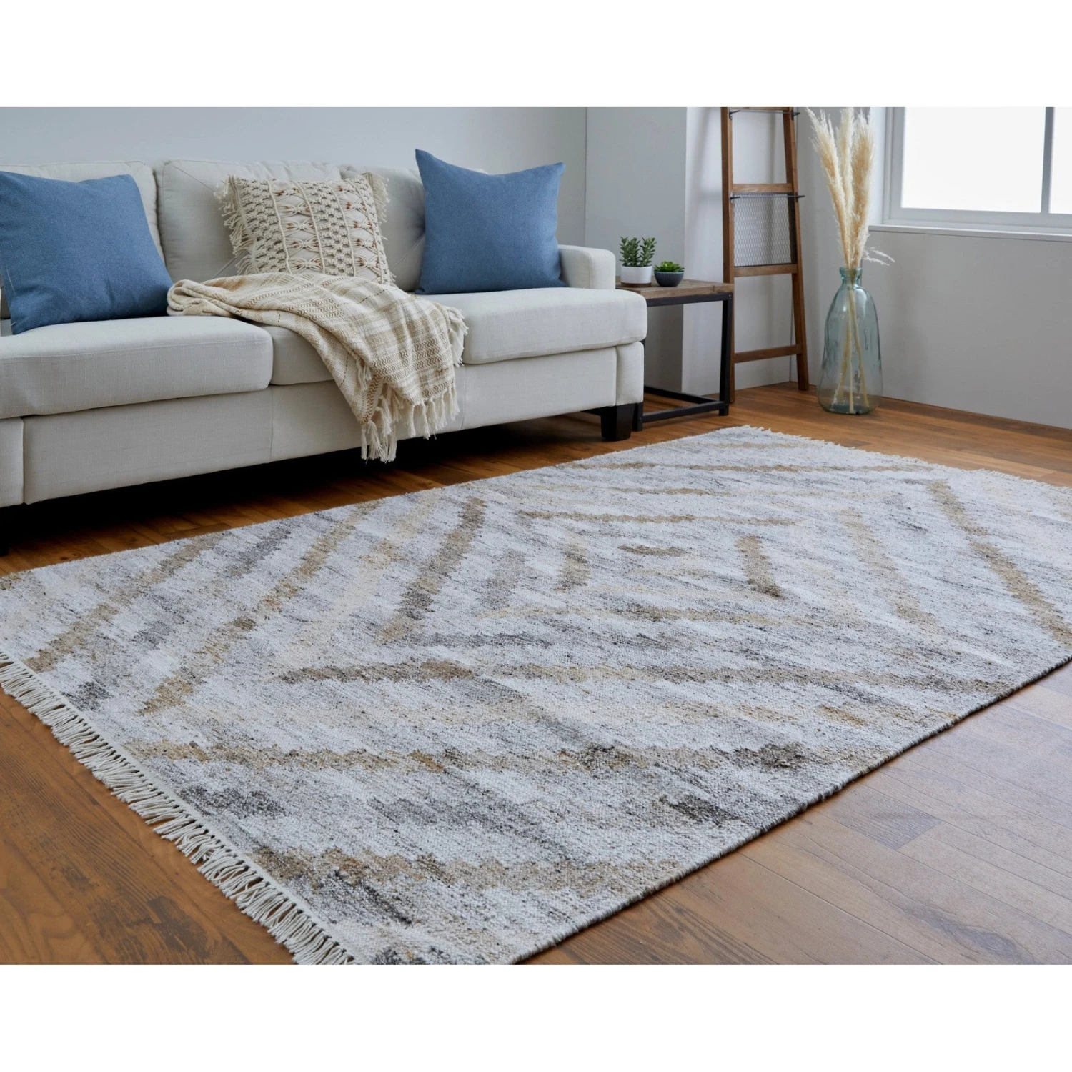 Feizy Beckett 0724F Transitional Geometric In Ivory/Gray/Tan