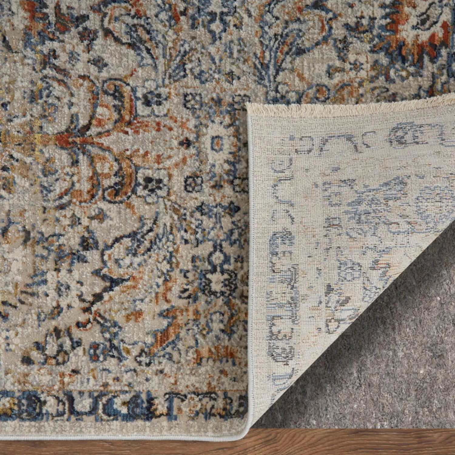 - The distressed, traditional and transitional inspired pattern of the rug comes in neutral colors of light blue, warm gray, and ivory.