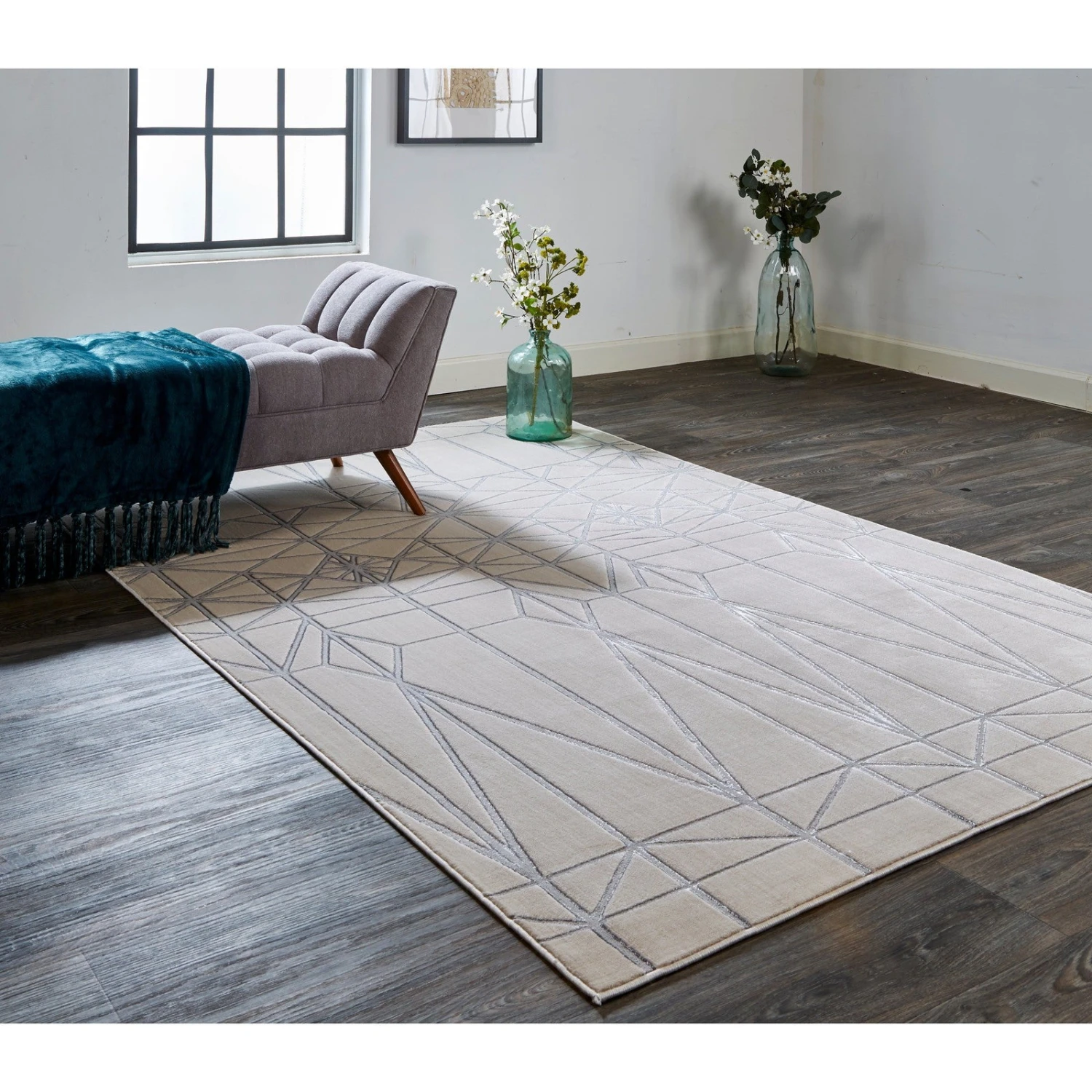 Feizy Micah 3045F Modern Geometric In White/Silver/Gray