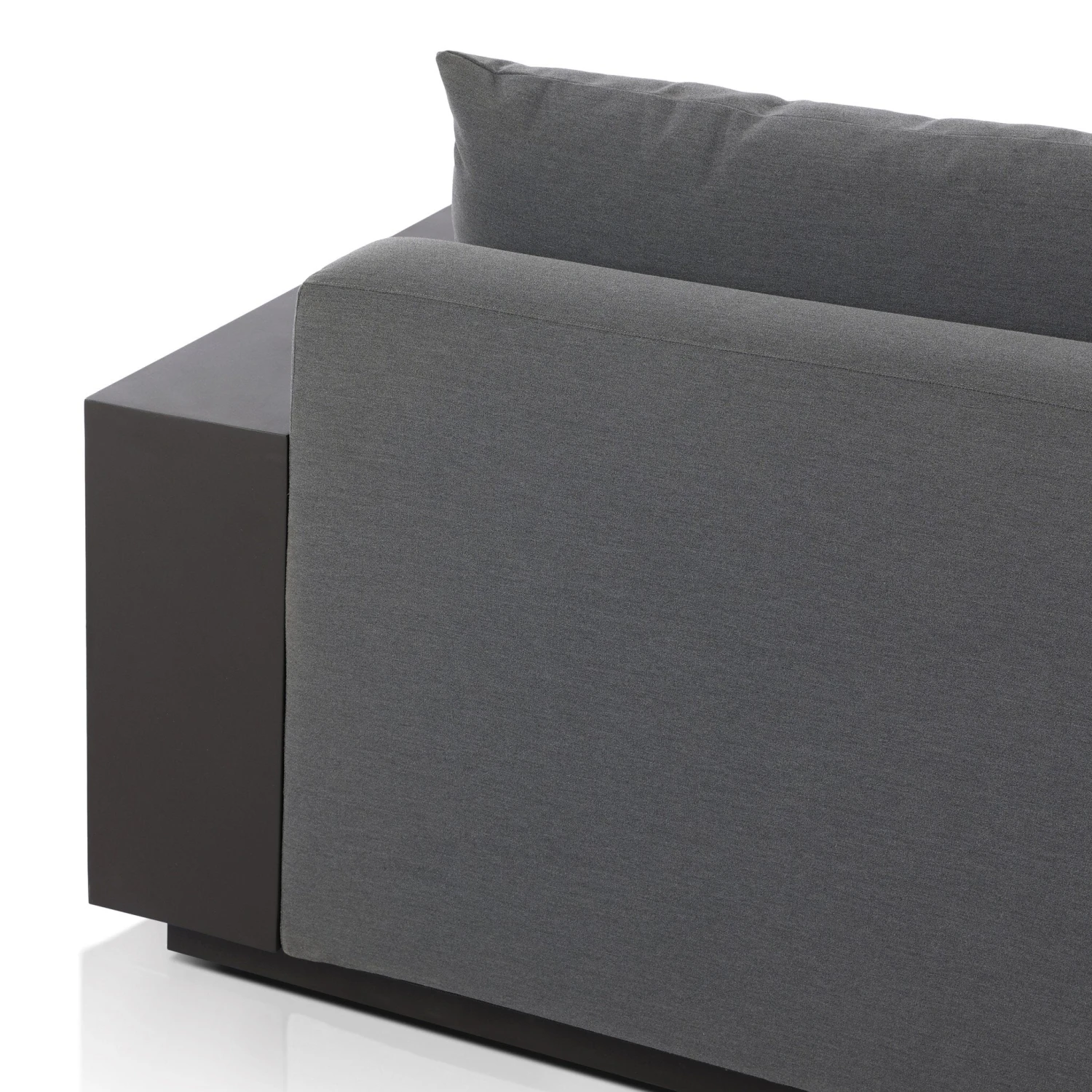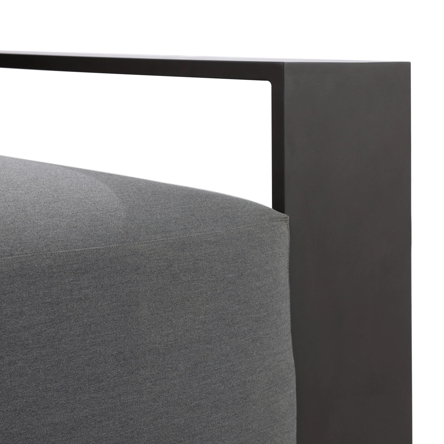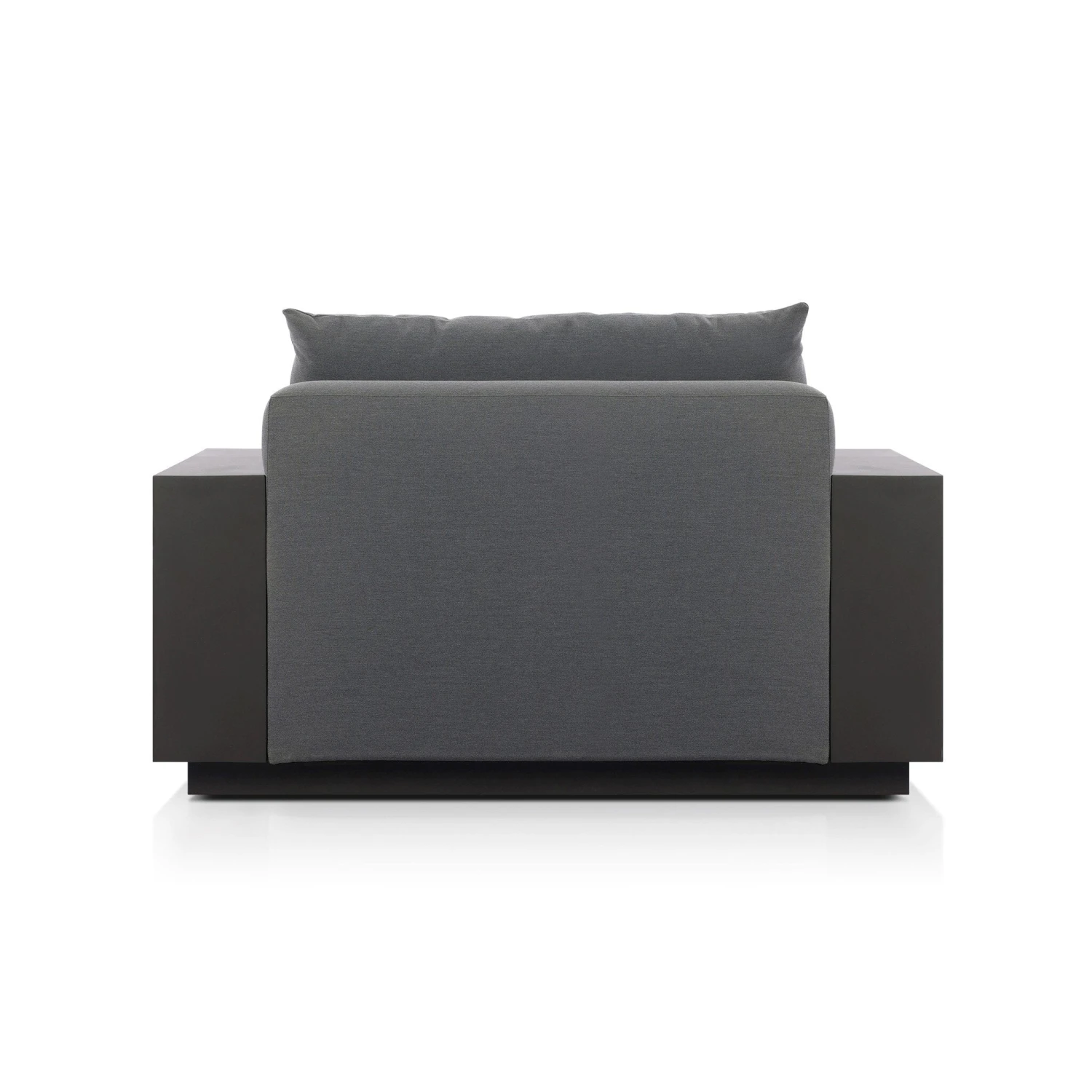 - This wide format outdoor chair features heavy metal framing and upholstery with an inviting sit