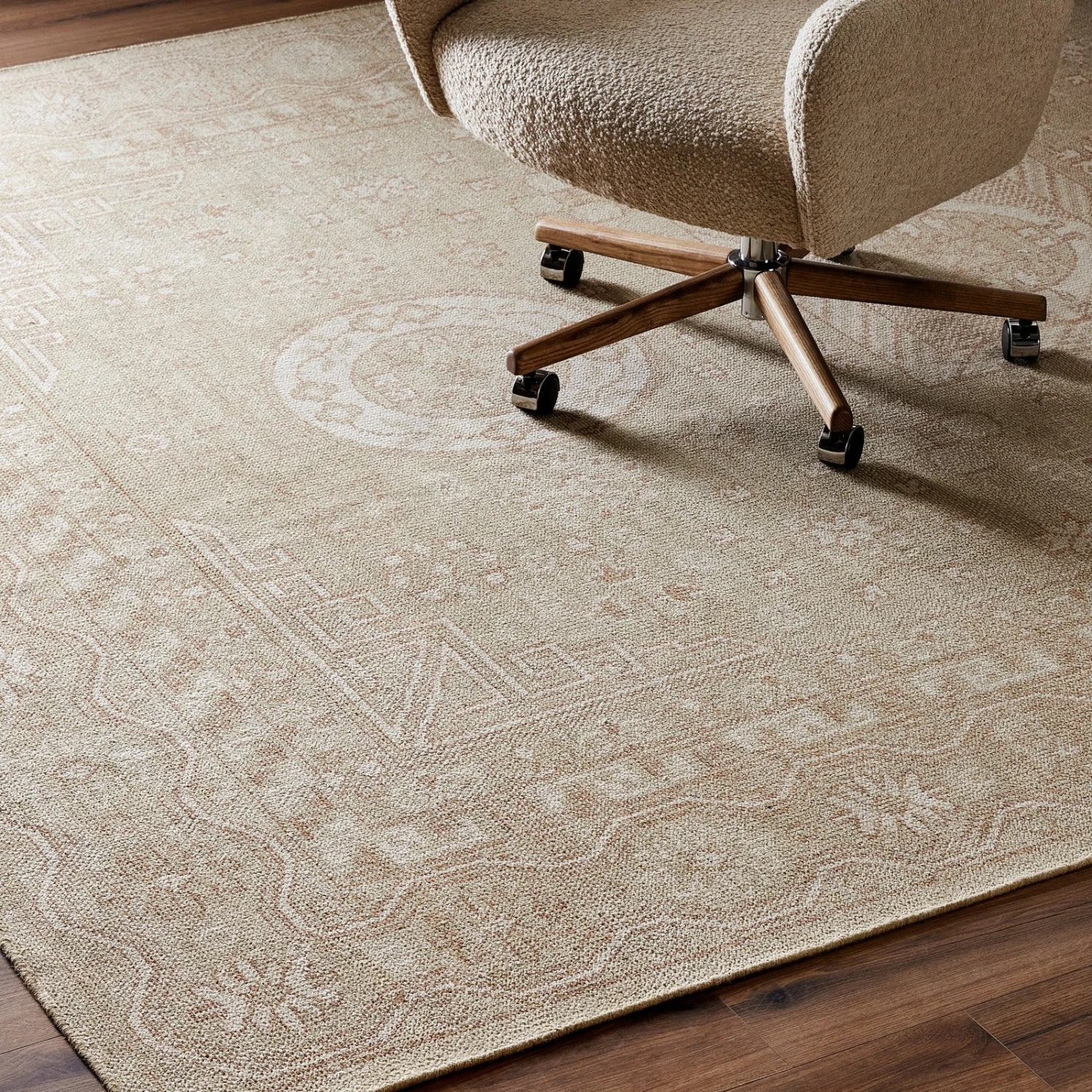 - This take is made from a soft wool/cotton blend in neutral earth tones with an intricate motif that’s been modernized, yet still seems to speak a story all its own.