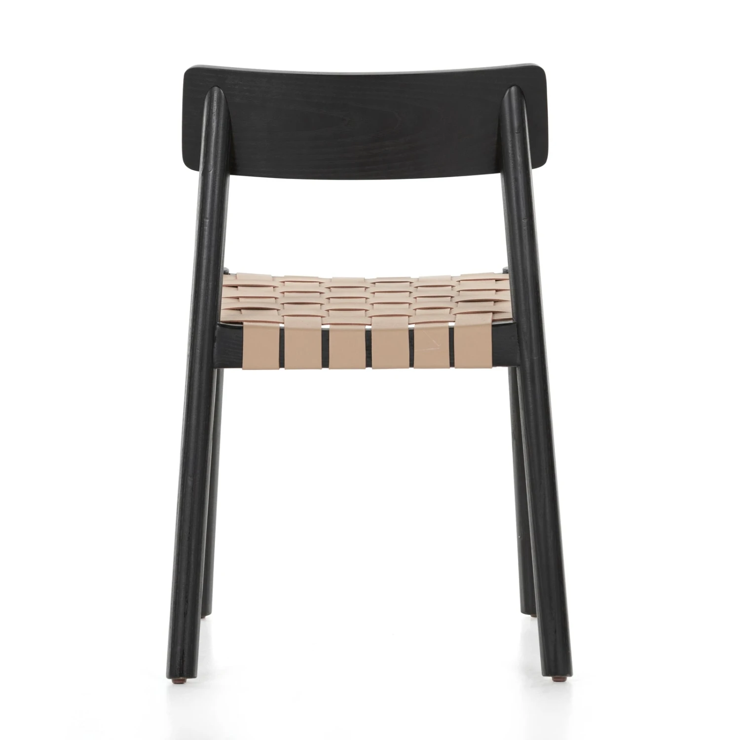 - Finished in a jet black, solid ash forms an airy, angular frame for woven leather seating in a cleverly contrasting tan/light tan, for a beautifully monochromatic look.