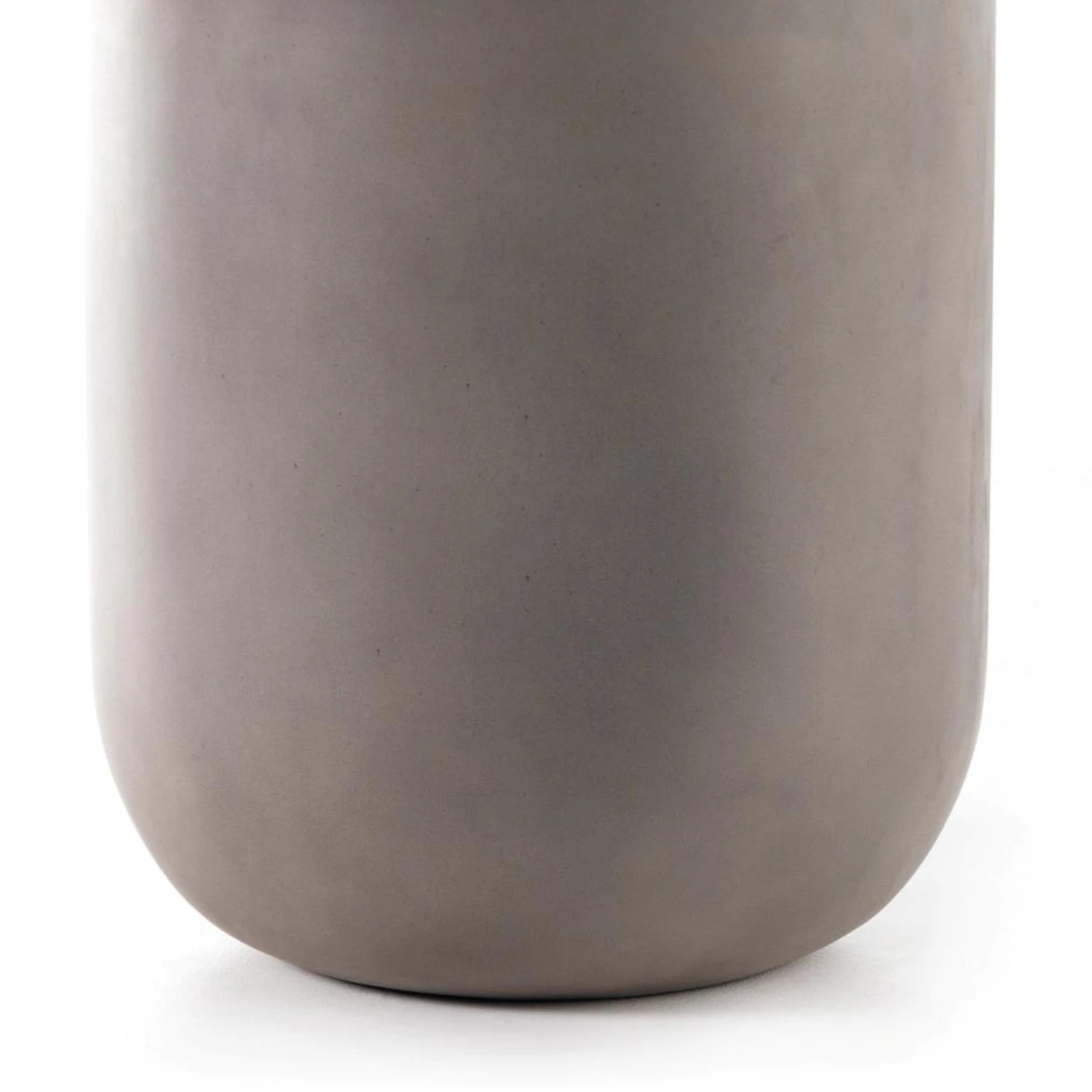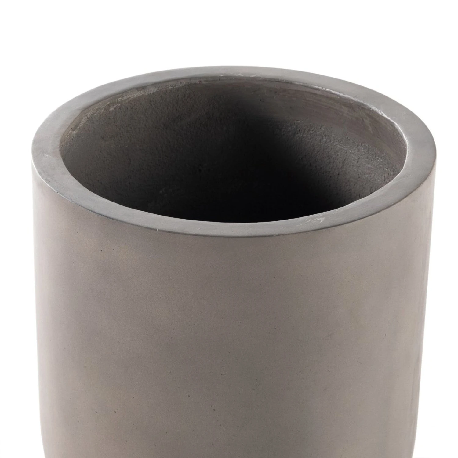 - Grey-finished concrete and round shaping make for a naturally sleek planter, indoors or out.