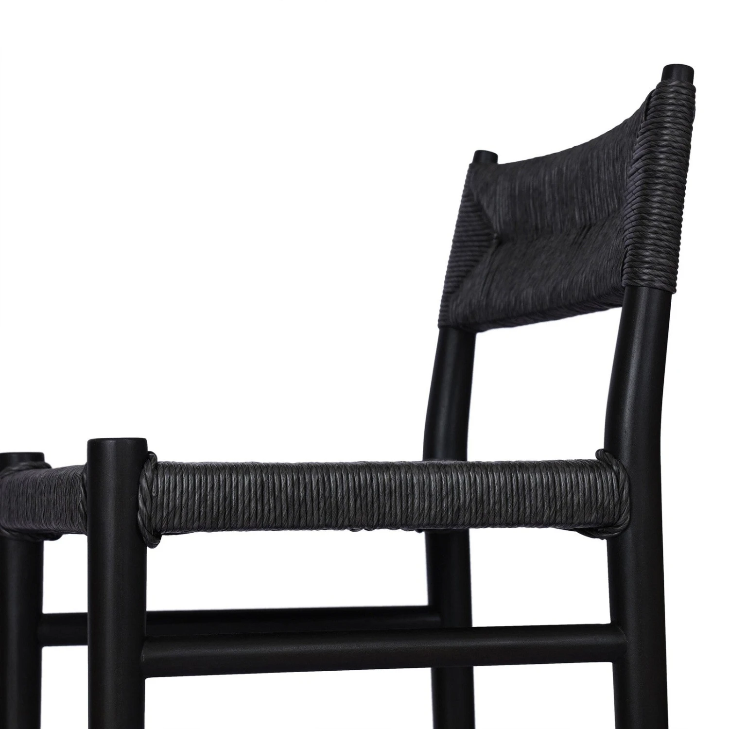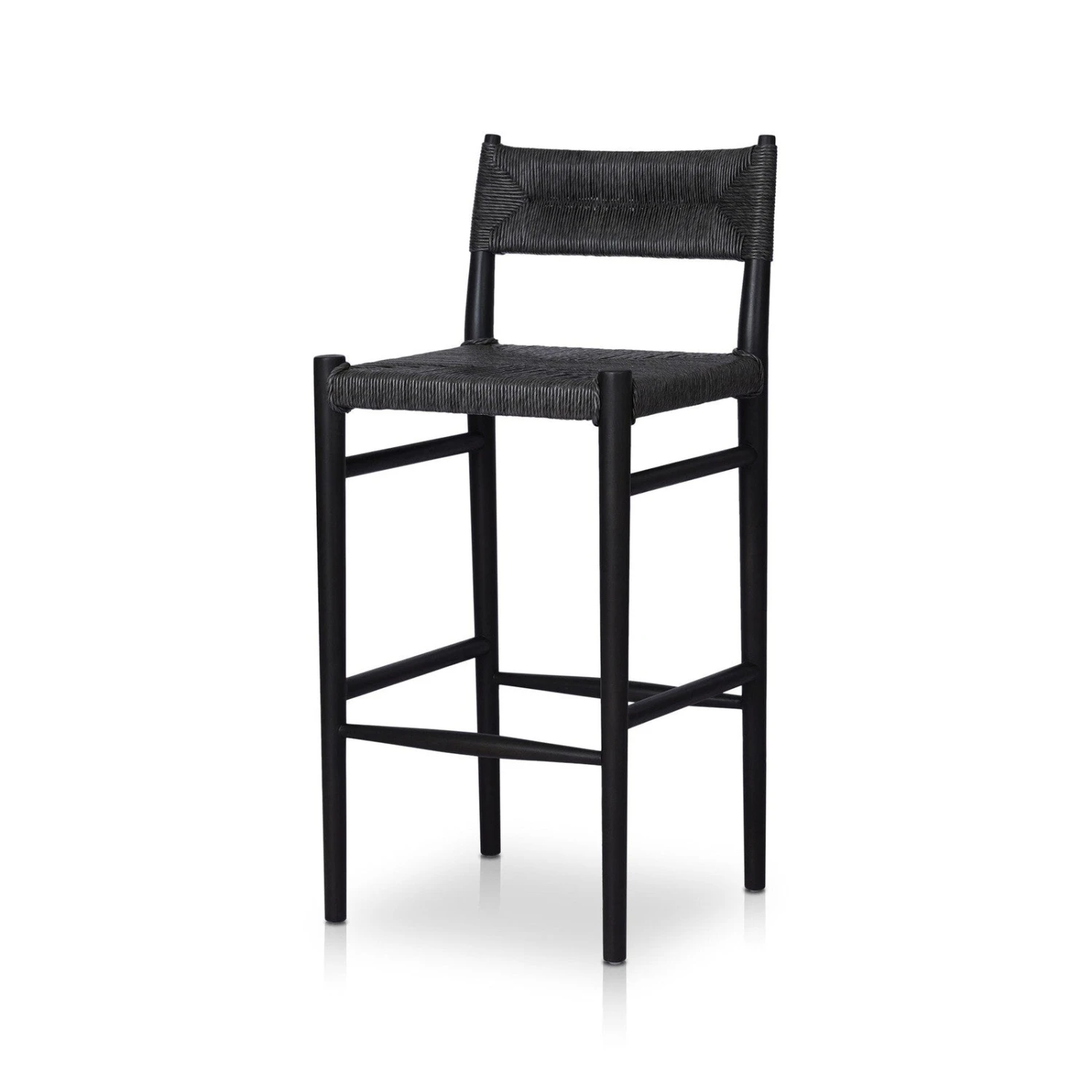- With a classic black finish, slim, tapered teak frames this woven all-weather wicker bar stool.