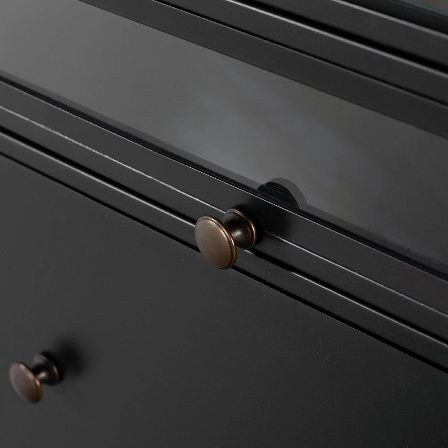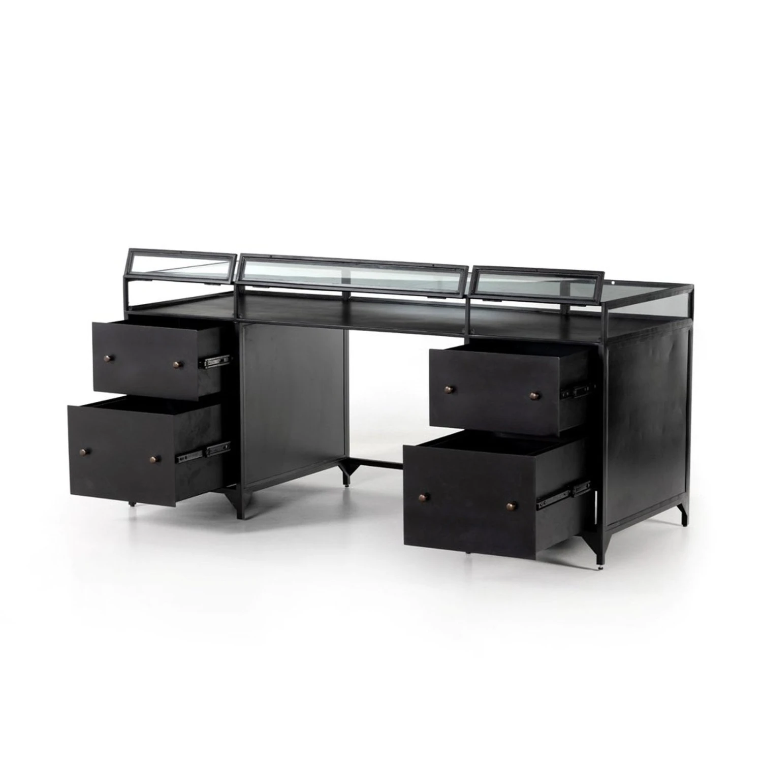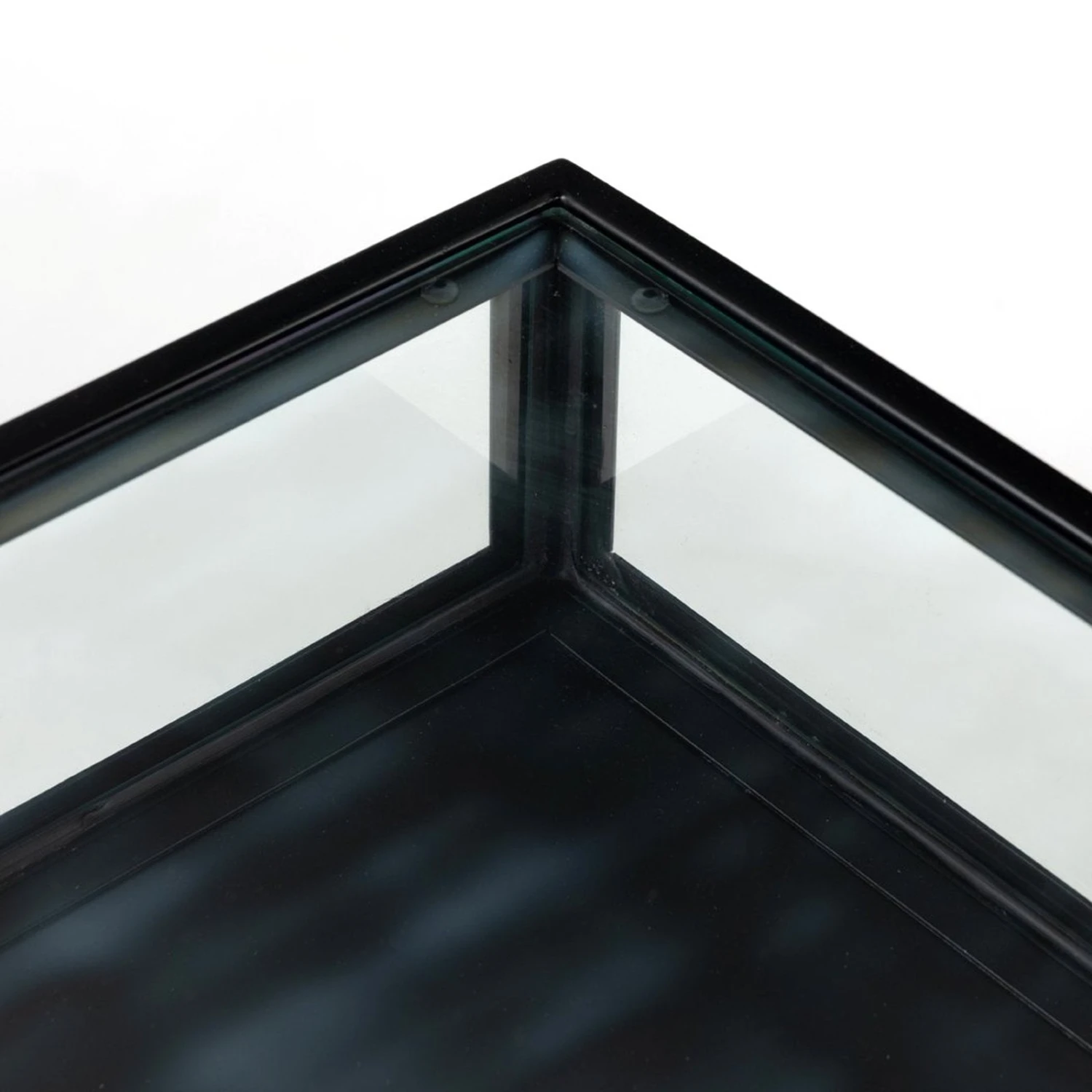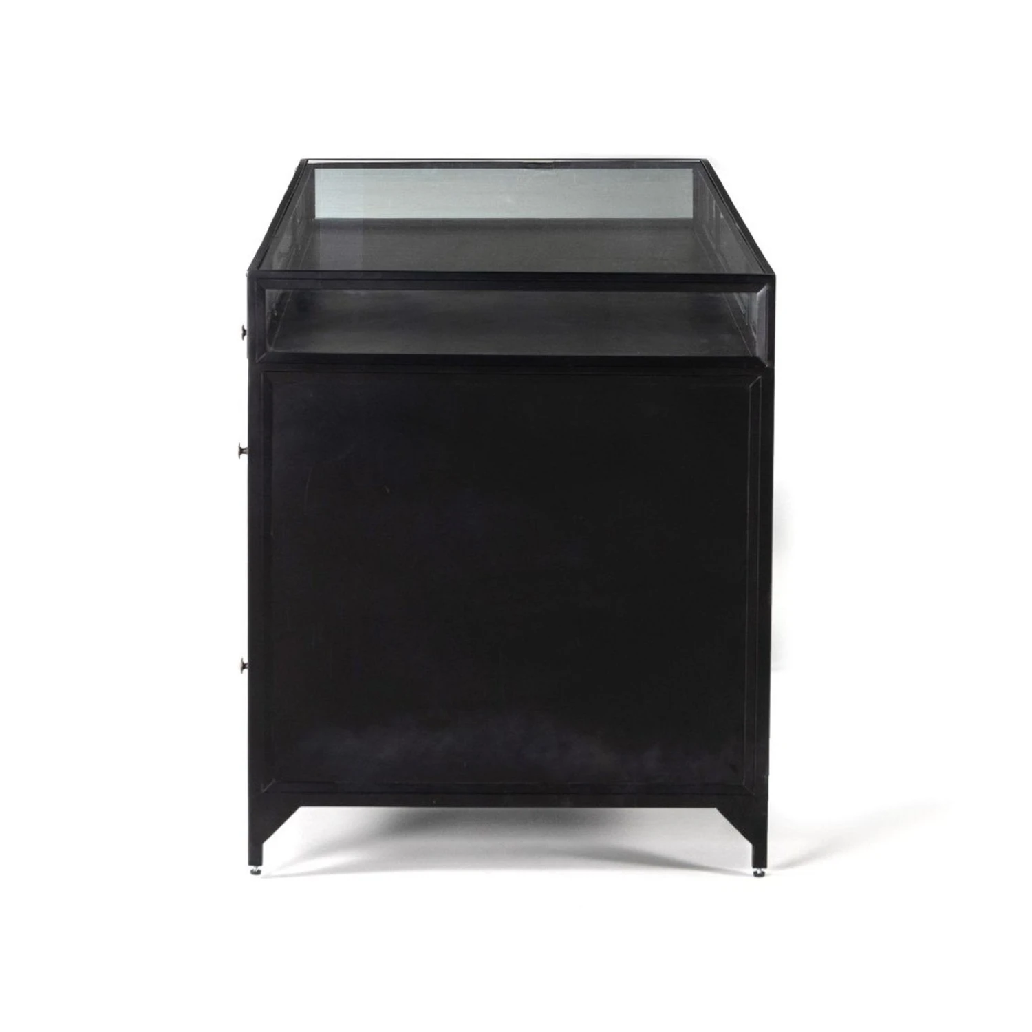- Display prized possessions in a glass enclosure with matte-black/gunmetal-finished metal.