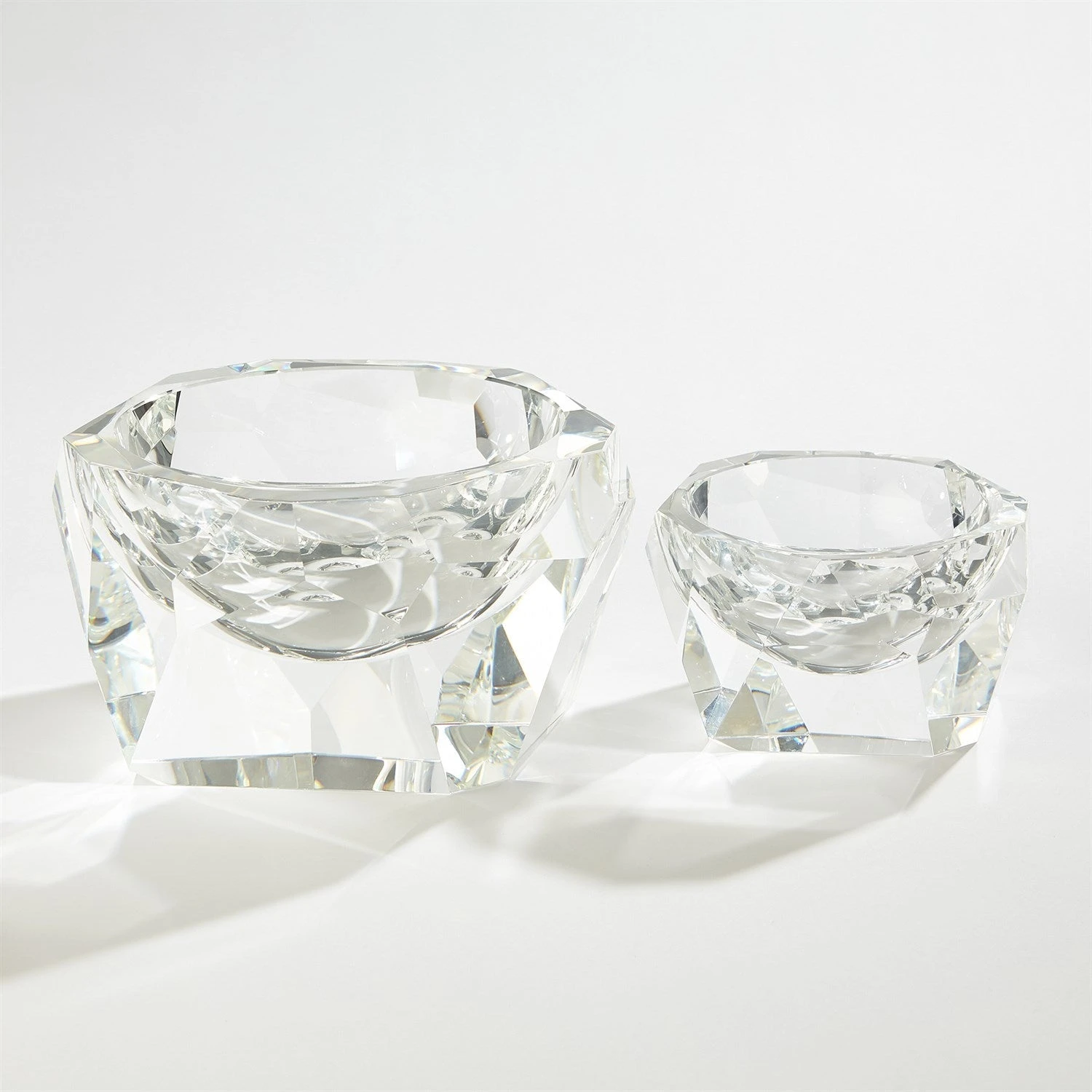- Our Multi Facet Crystal Bowls are formed from large blocks of crystal and ground smooth to make the polished edges and creative shape.