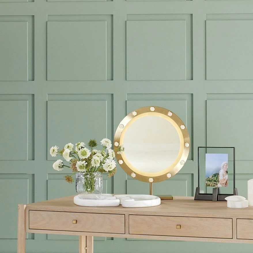 - A luxurious addition to any vanity, our Quartz Vanity Mirror features natural quartz crystal details that are backlit for a soft glow.