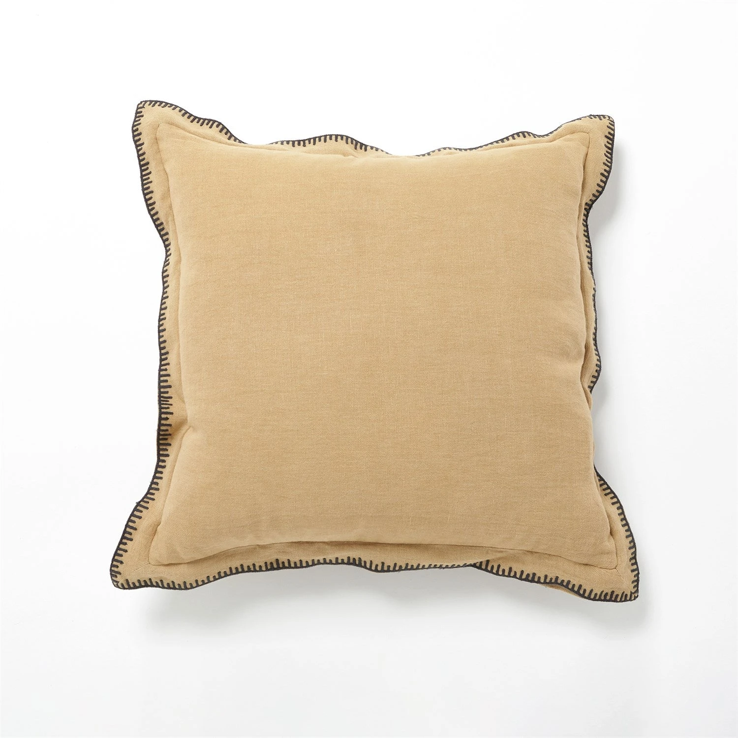 - The Stitched Pillow features golden linen with whipstitched details and includes down fill insert.