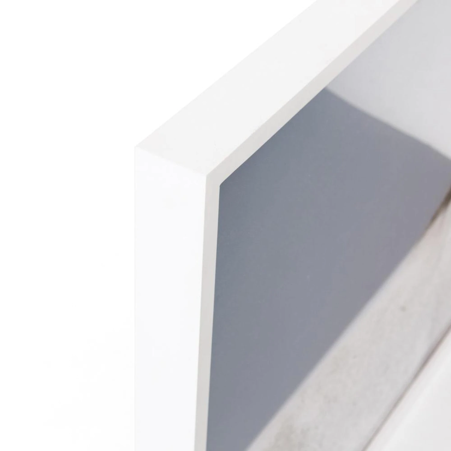 - The simple side profile of a bowed-head horse is printed on top-quality photo paper and framed within white American maple, for clean, striking effect.
