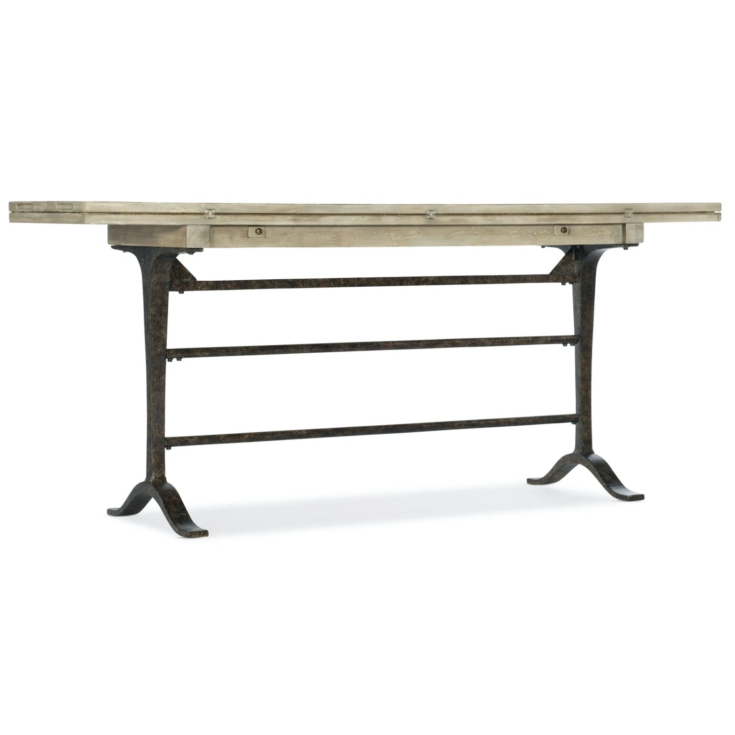 - With a chic French industrial look, you can use this metal and wood console as a sofa table, desk and even for extra dining when guests arrive.