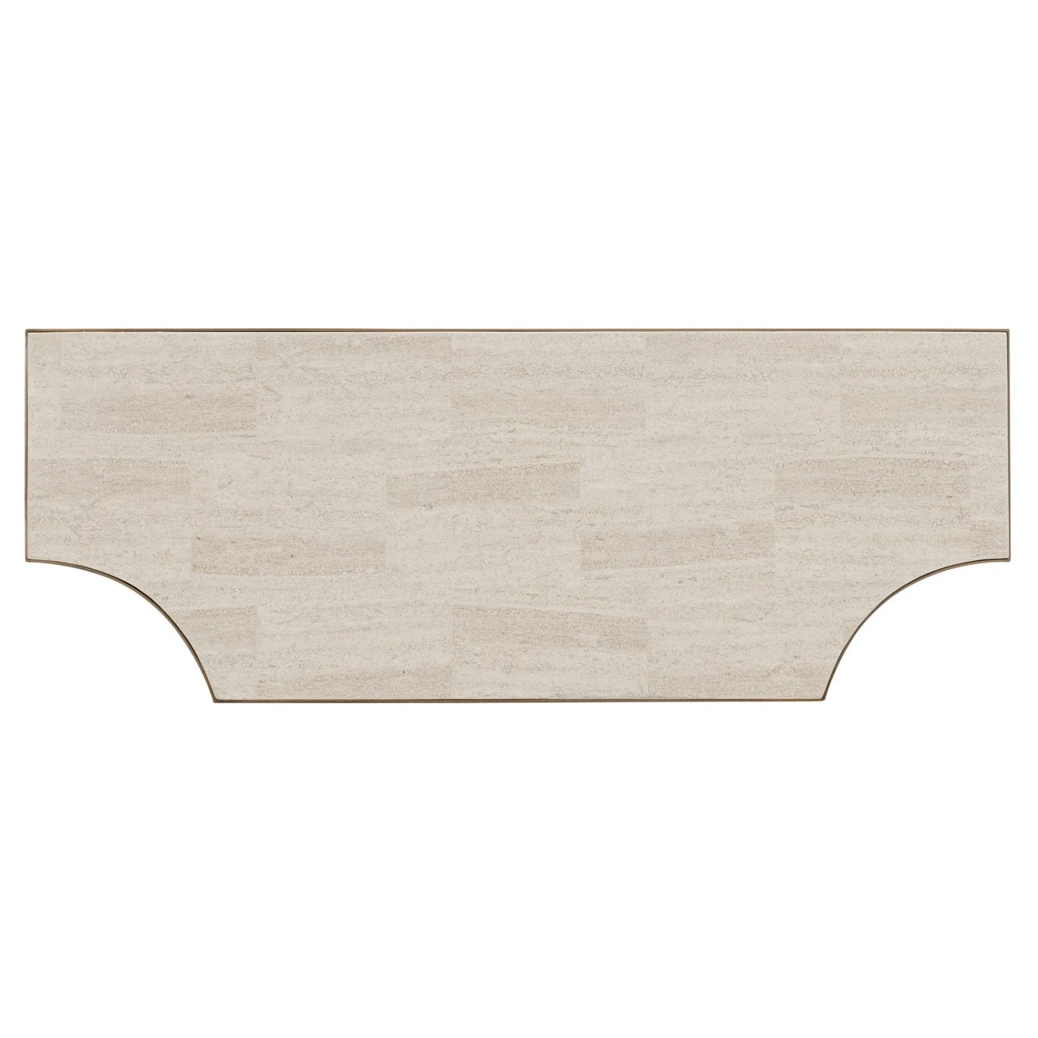 - With understated opulence, the delicately-scaled Commerce & Market Console Table combines White Travertine Stone on the shaped top and bottom shelf with a gold-colored metal frame.