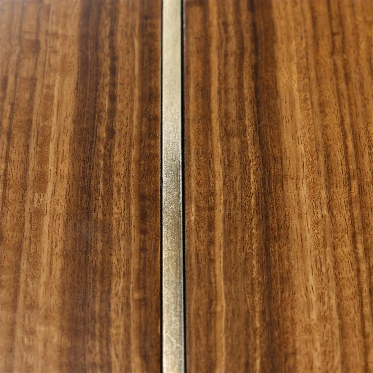 - Two rectangular surfaces of Light Smoked eucalyptus wood are separated by two textural steel legs in a Rose Silver finish, creating a stylish juxtaposition between natural and metallic tones