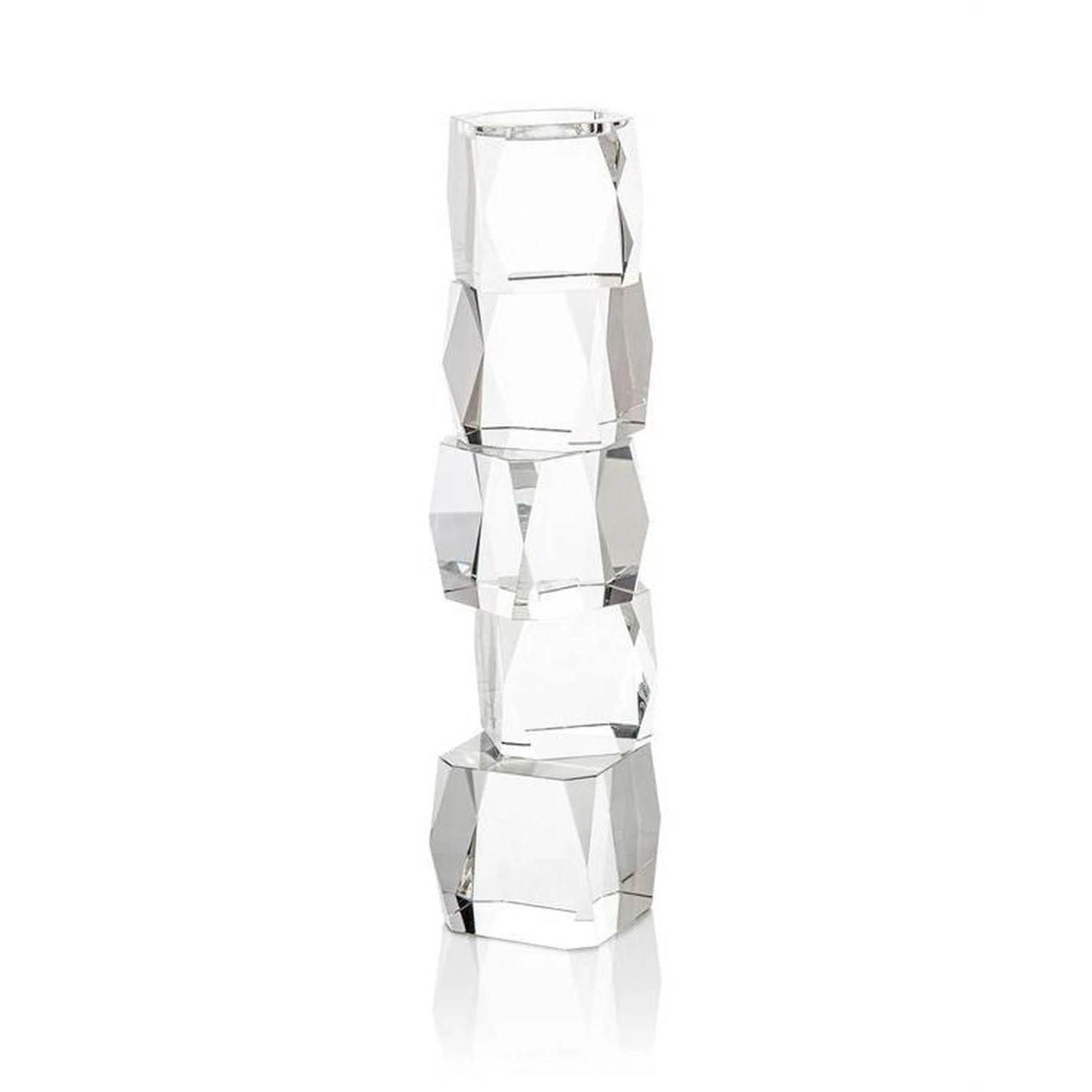 - Five giant irregular cubes of crystal create this stunning candleholder.