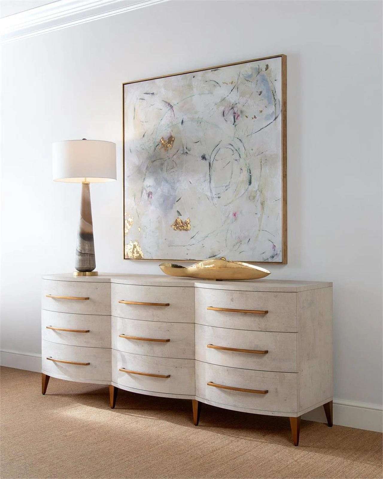 - The piece is touched by hints of gold leaf and added gel for texture.
