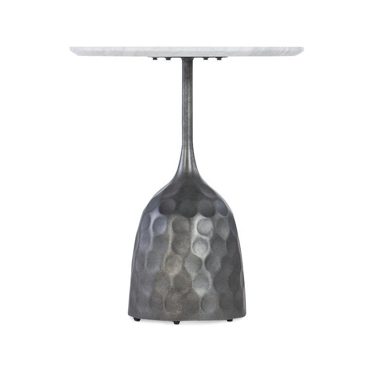 - Celebrating the authenticity of materials and design, the 21-inch round Zuri Drink Table has a gray metal base with a hammered dimple design.