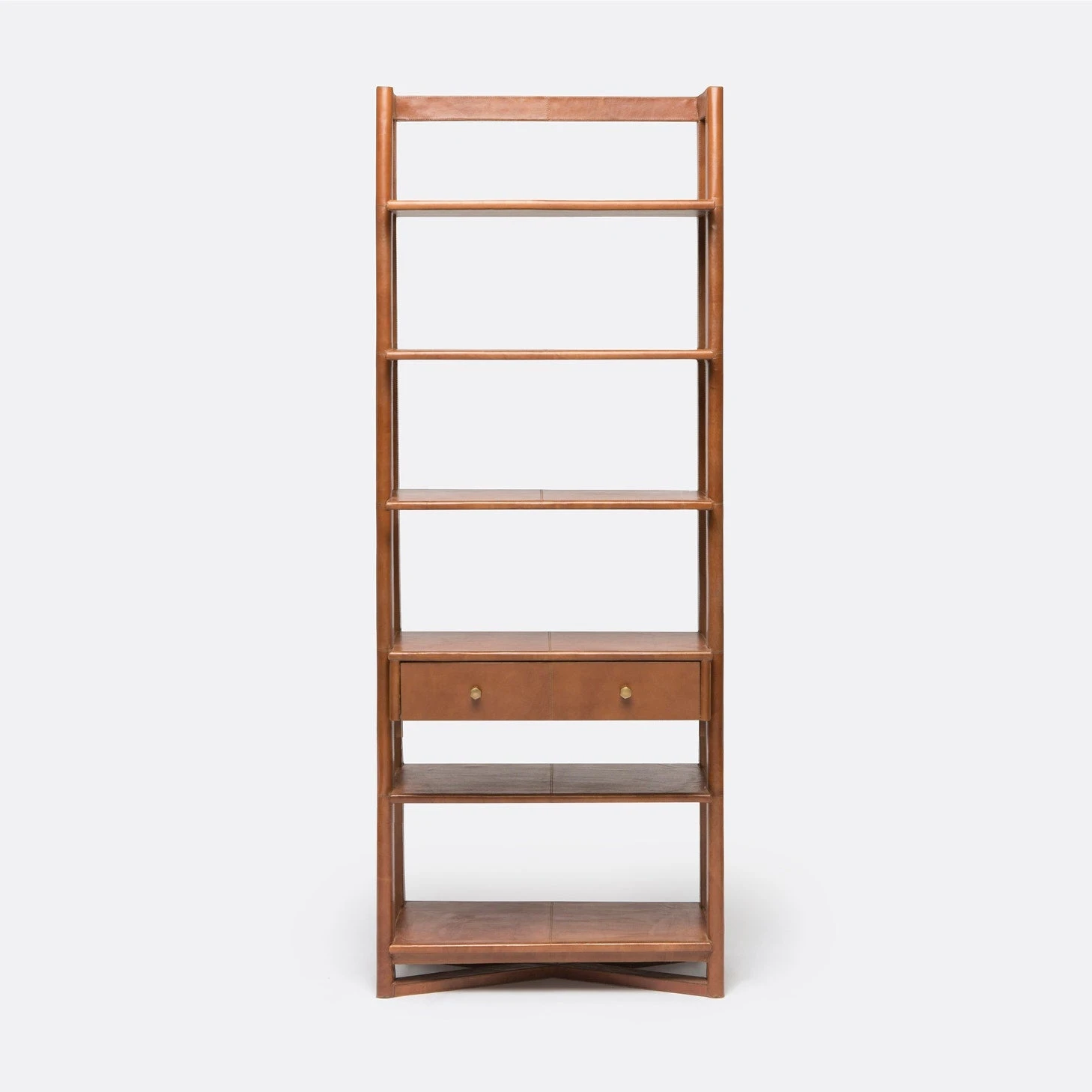 - Leather-Wrapped Shelves: The Farlan Bookcase features angled shelves wrapped in high-quality, full-grain leather, adding a touch of luxury and uniqueness to your decor.
