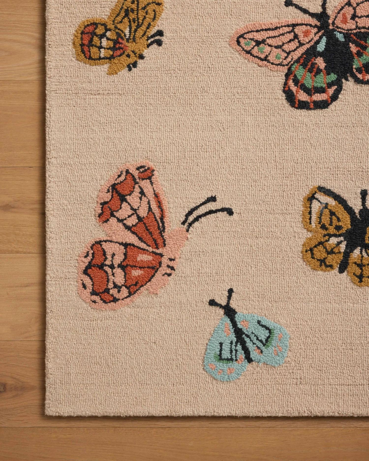 - The rug’s design is filled with timeless roses, flowering vines, and fluttering butterflies, beautifully crafted in a palette designed to add rich, sophisticated color to your home decor
