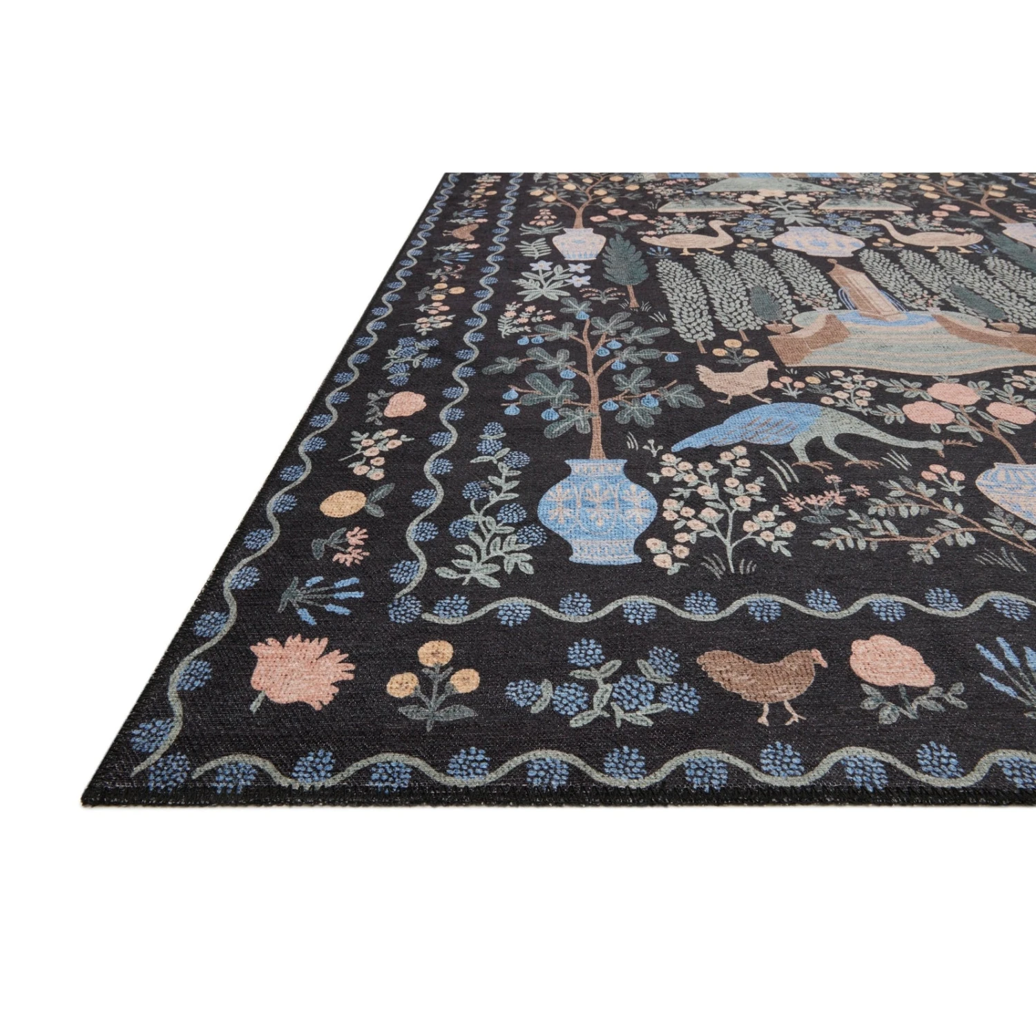 - Power-loomed of 100% polyester pile in Turkey, the Menagerie Collection for Rifle Paper Co. x Loloi brings whimsy to the home.