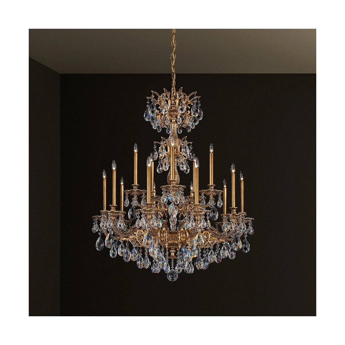 - The baroque castings of Milano, made in Italy, feature delicate ornamentations that celebrate the heritage of the great Italian chandeliers of the seventeenth Century. Heavy crystals enhance the lace-like precious metal body.