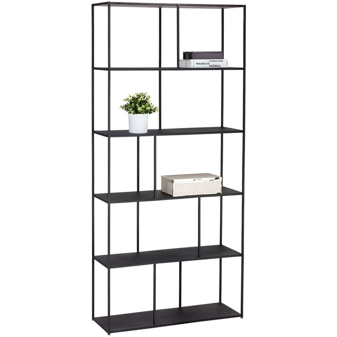 - Add style and warmth to living and office spaces with this well-designed steel bookcase from our MIXT collection in a matte black finish.
