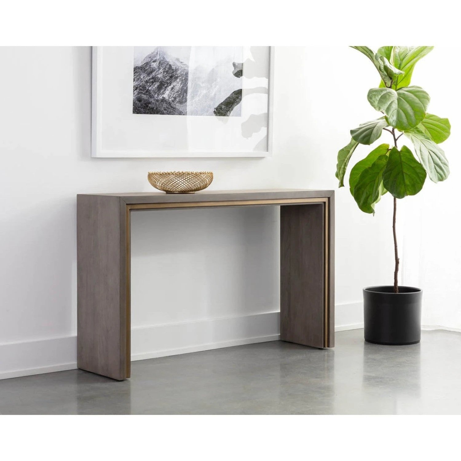 - The Hilbert Console Table is grounded in a functional modern design.