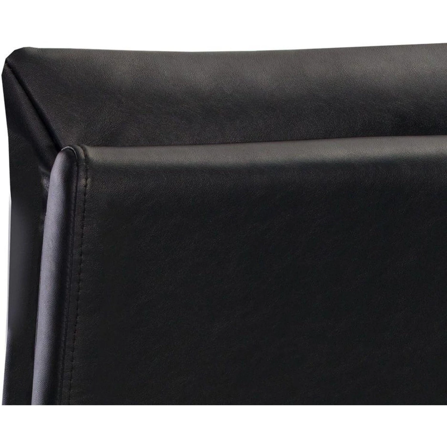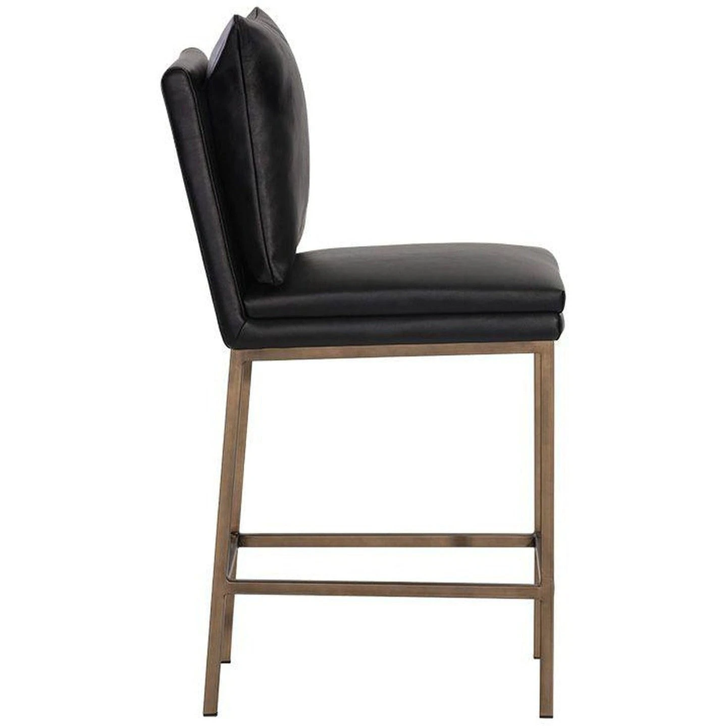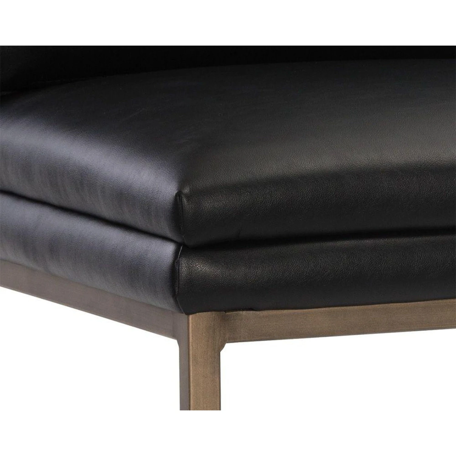 - Designed with a cushion-like seat back in bravo black faux leather with antique brass iron legs.