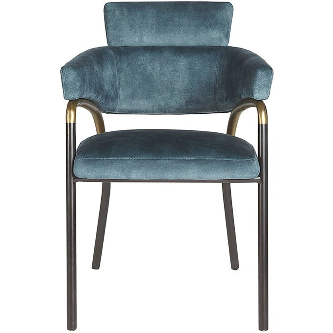 - Stocked in nono petrol fabric, and completed with black metal legs that feature a porto bronze armrest accent.