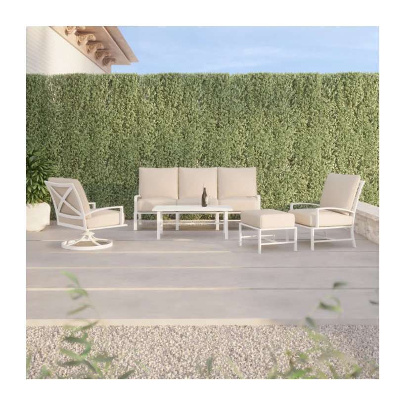 - Sunset West’s transitional Bristol Coffee Table is rendered in high quality, low-maintenance aluminum that will stand the test of time.