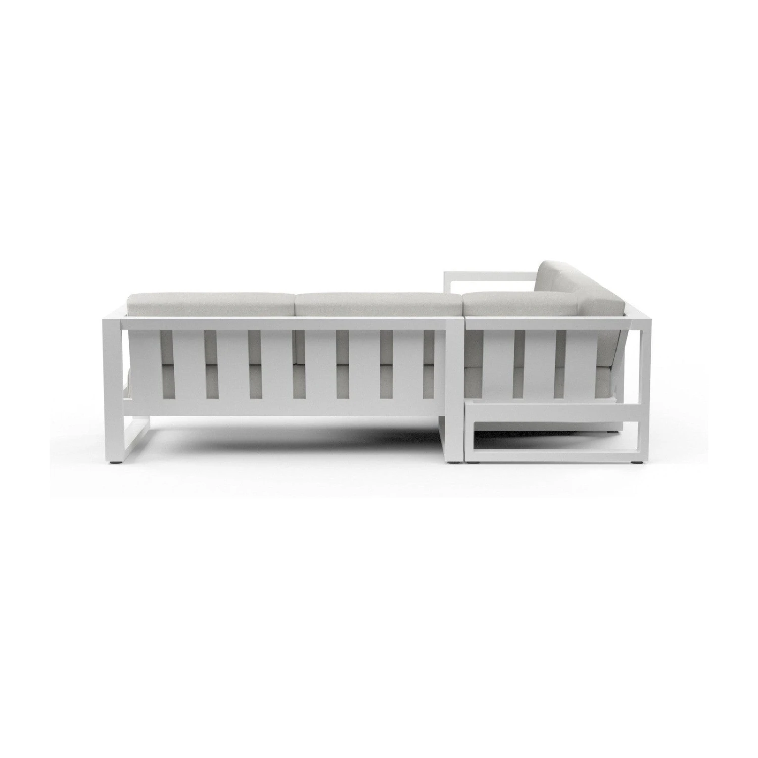 - Sectional includes 1 Left Arm Loveseat, 1 Right Arm Loveseat, and 1 Corner unit crafted in powder coated aluminum in a Satin White finish.