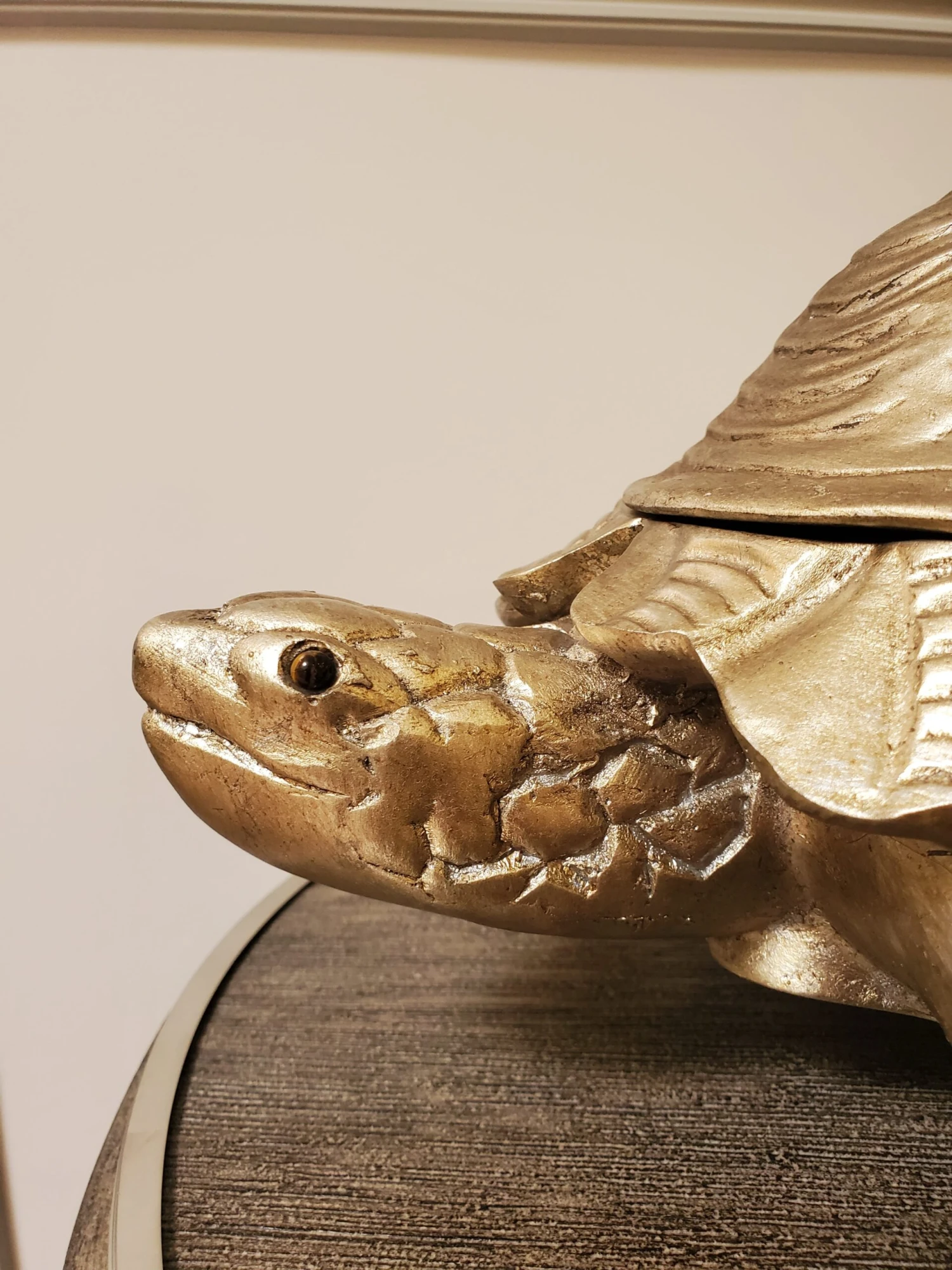- This elegant statue features a gold turtle, with a shell that cleverly acts as a cover to a small compartment.