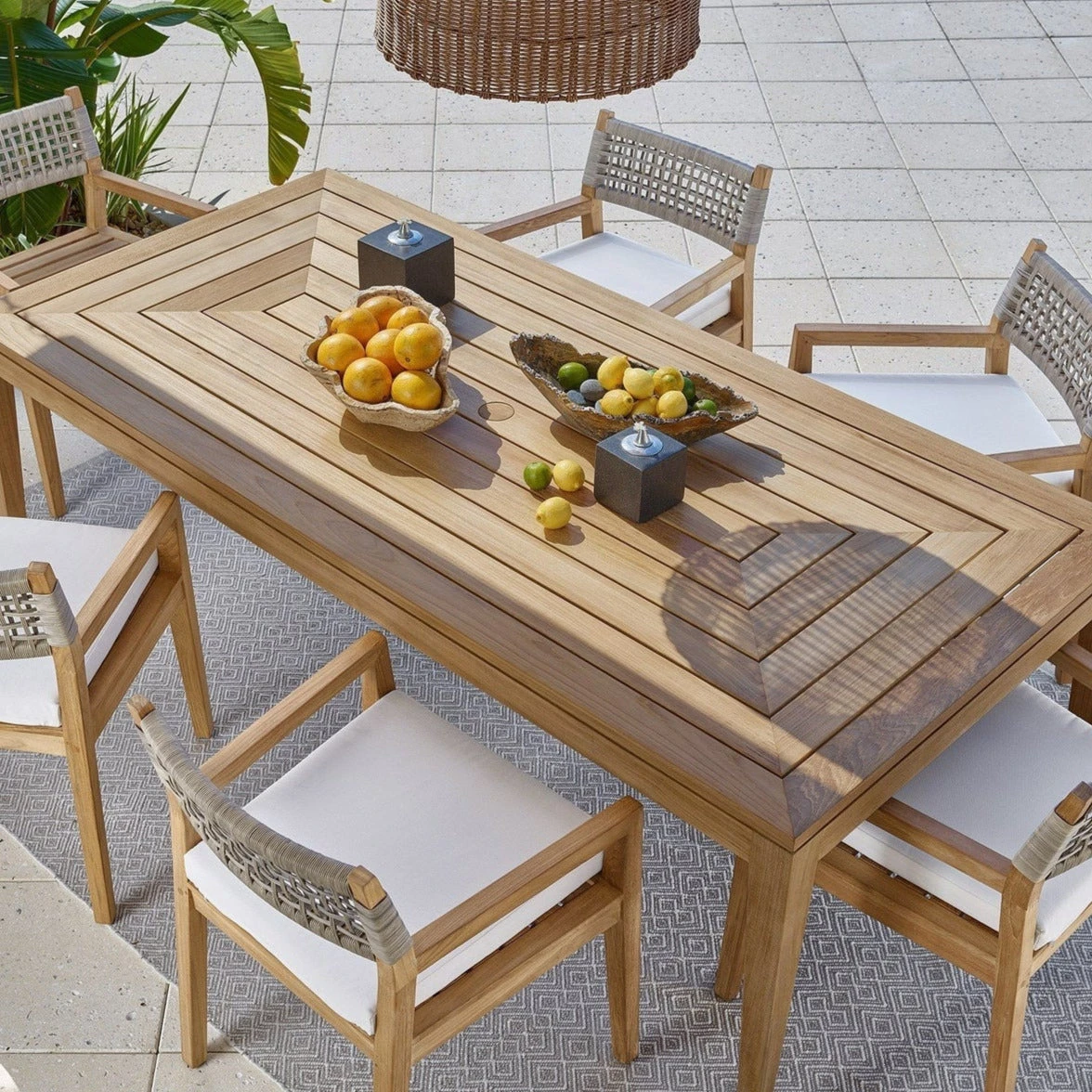 - Enjoying a classic appeal, the Chesapeake Rectangle Dining Table provides the perfect backdrop for outdoor dining areas.