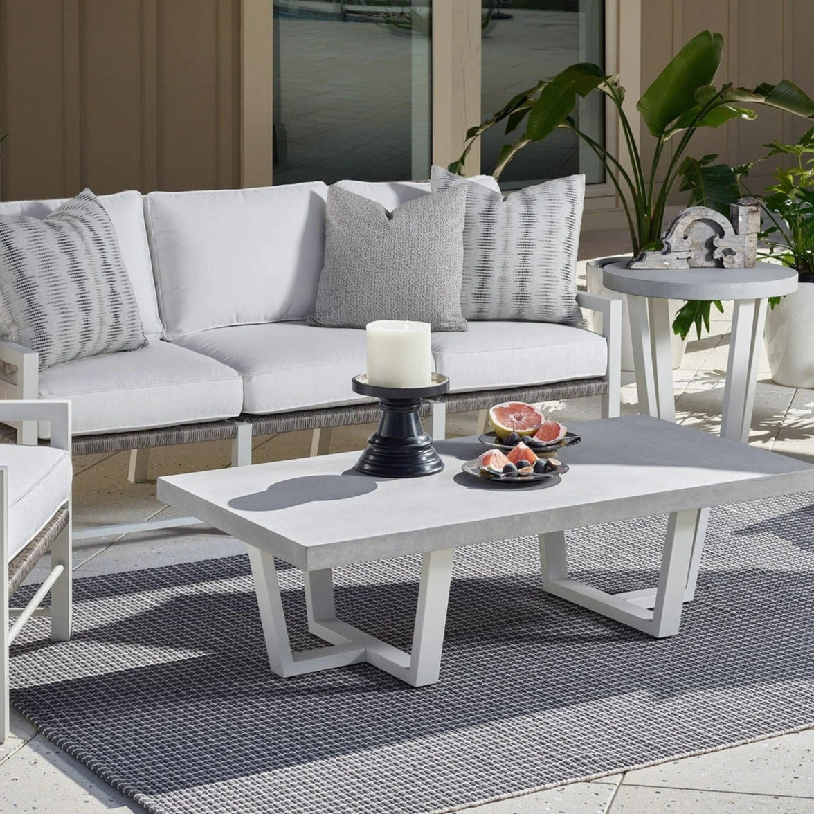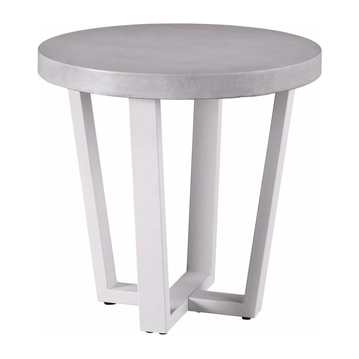 - Add some extra surface space with the stylish South Beach End Table, built with a rounded cast concrete top and an angled metal base.