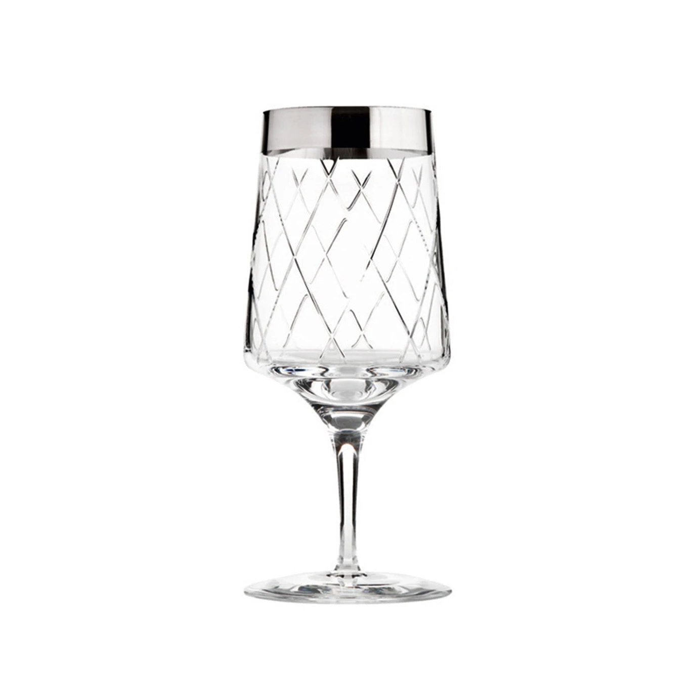 - The composition of the table set reflects current trends in that the glass of water is shorter compared to the wine glass, which can be used for both white and red wine.